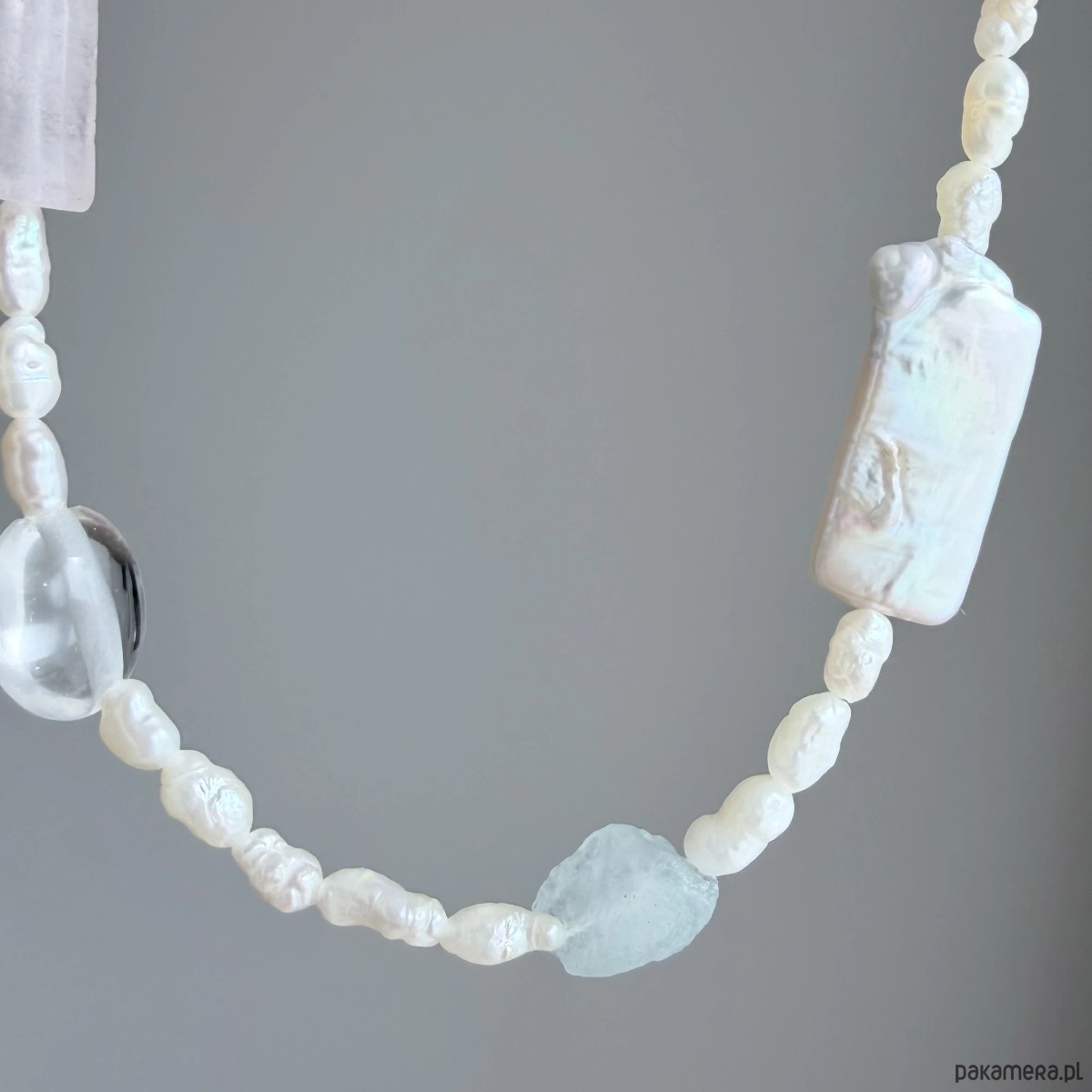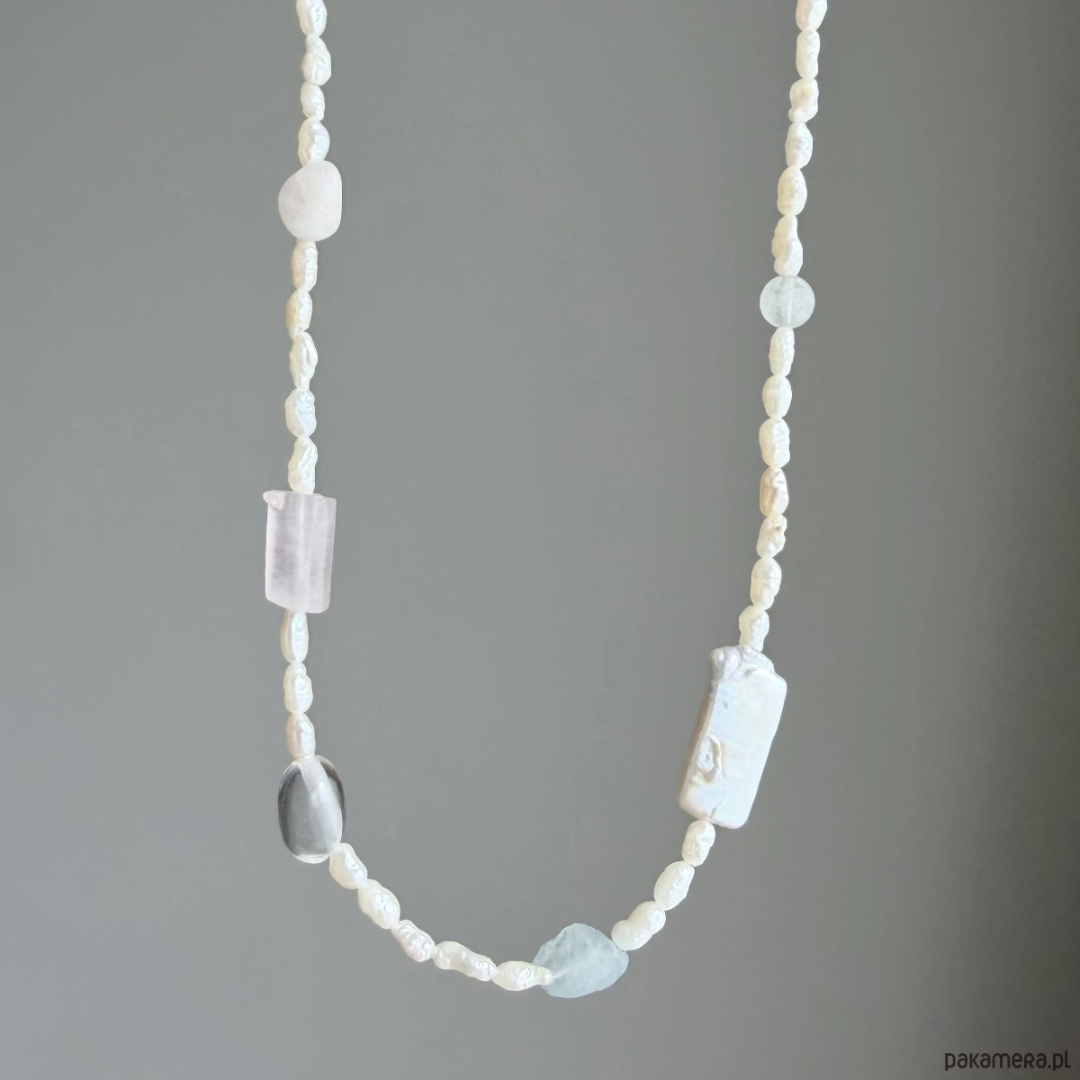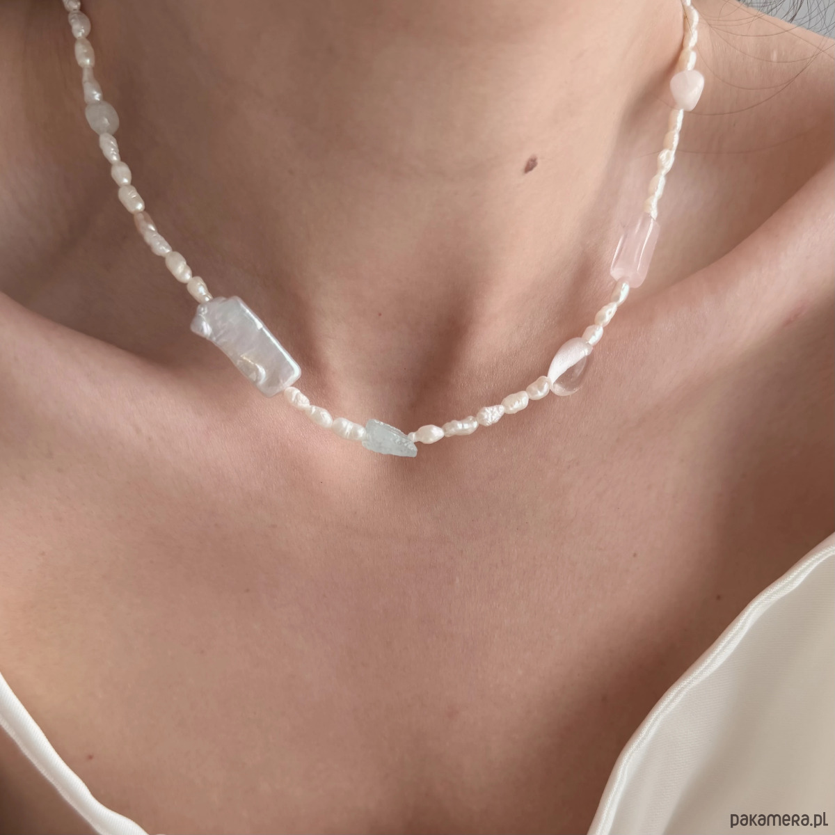 Naszyjnik z naturalnych pereł i kamienie naturalnych