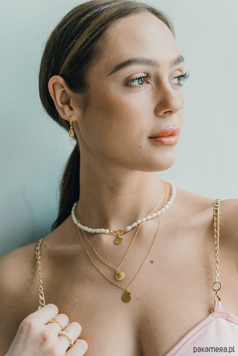 Naszyjnik z naturalnych pereł z grawerowaną muszelką