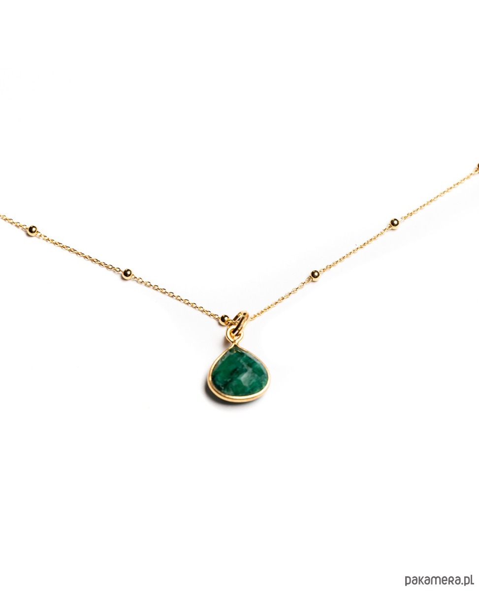 Na delikatnym łańcuszku zawieszony jest naturalny nefryt w kształcie łezki. Głęboka zieleń kamienia otulona złotem, tworzy połączenie pełne światła i harmonii. Całość wykonana w srebrze 925, złocone 24 k złotem.