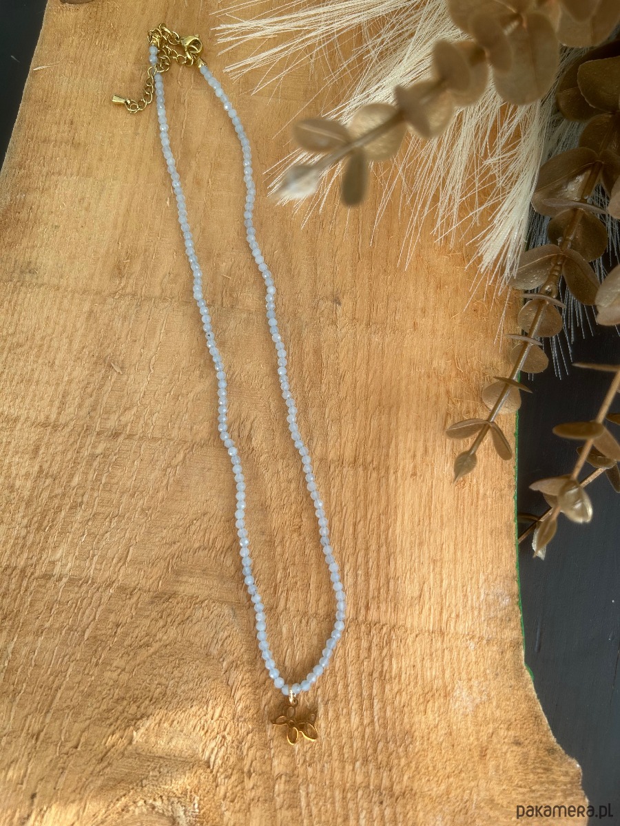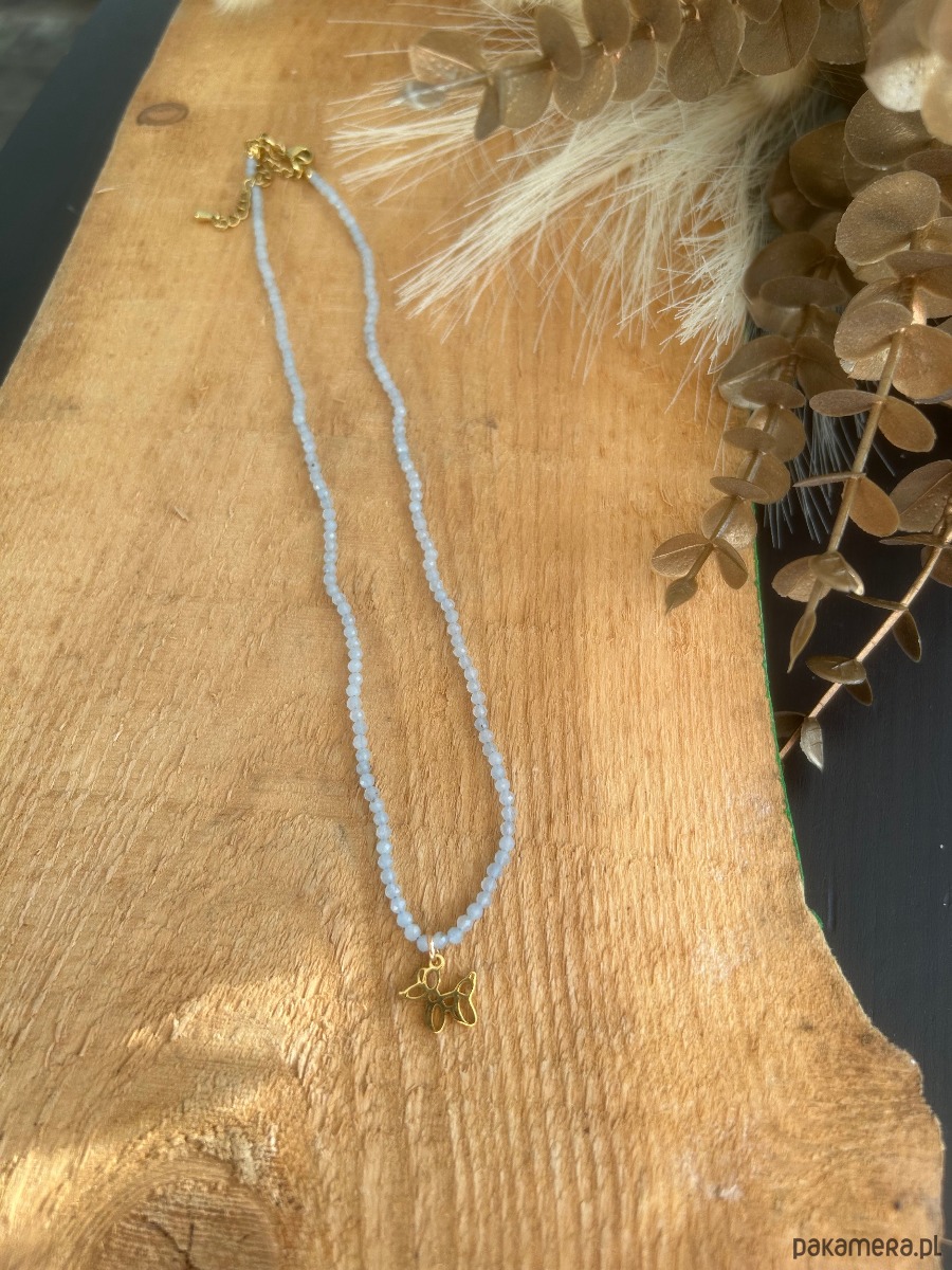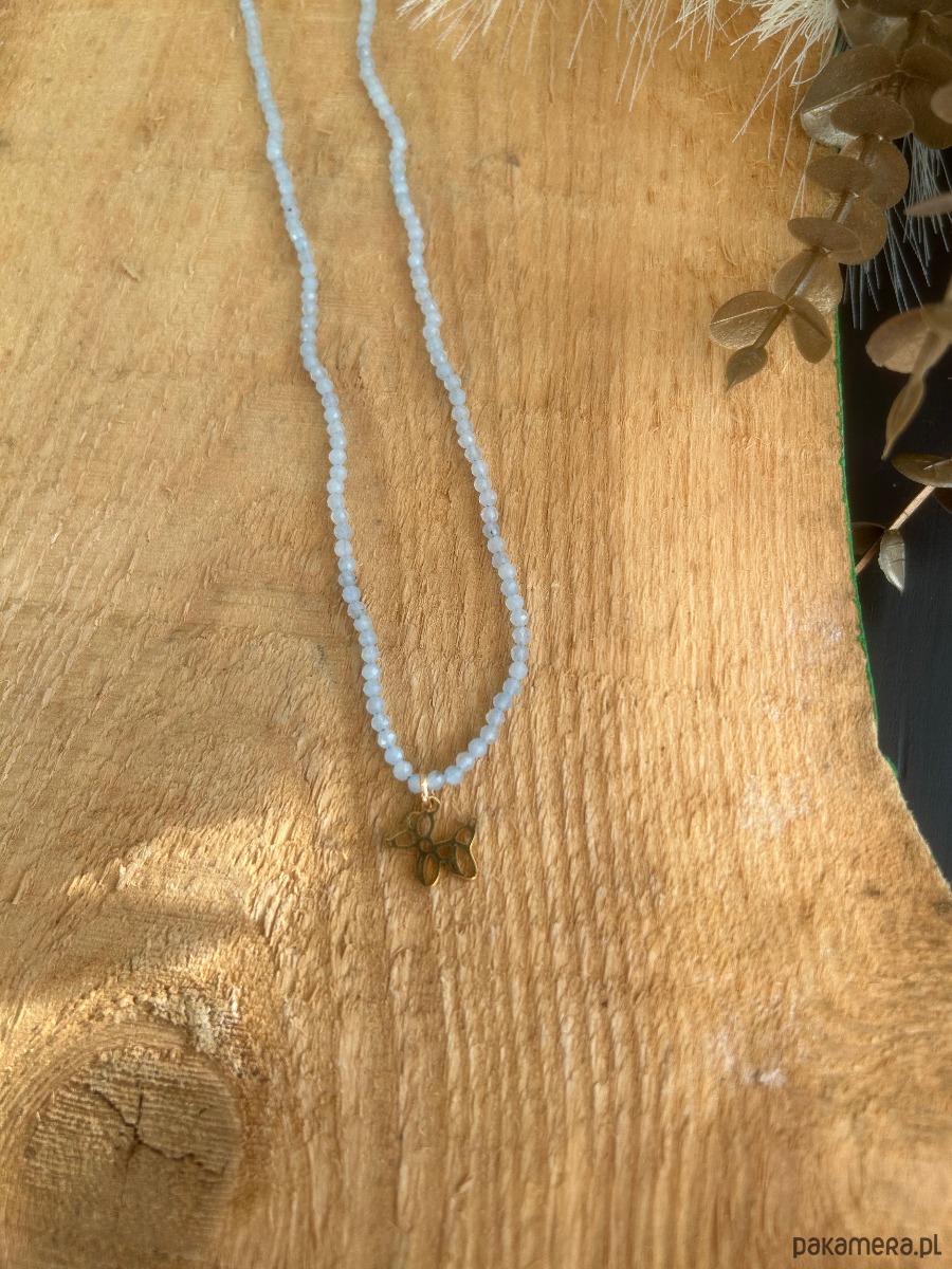 Naszyjnik z niebieskim morganitem i zawieszka z pieskiem