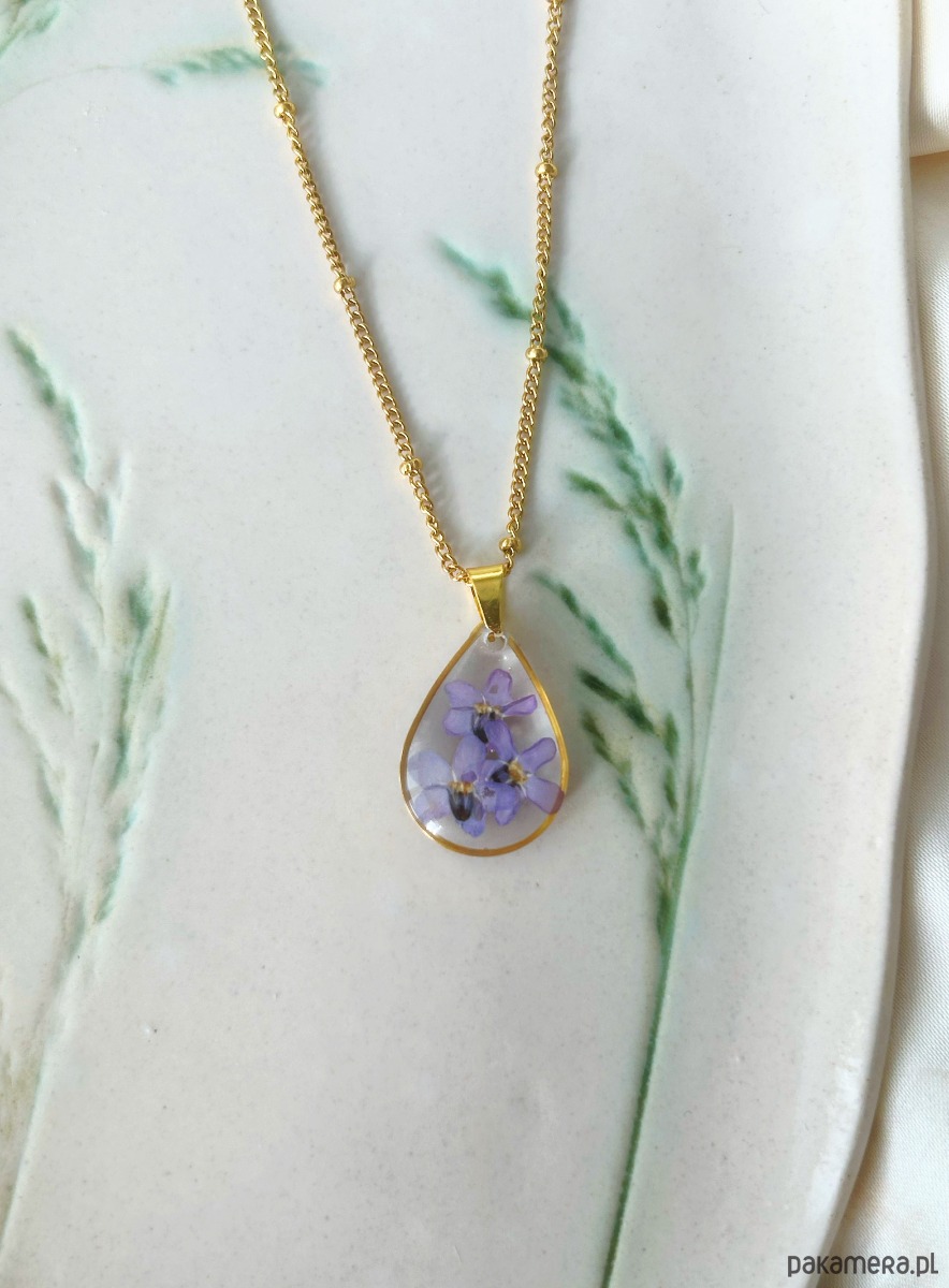 Zatrzymaj w kropli żywicy ulotne piękno natury. Ten delikatny naszyjnik skrywa prawdziwe niezapominajki zatopione w krystalicznie czystej żywicy, tworząc biżuterię, która łączy w sobie subtelność i emocję.
