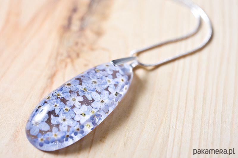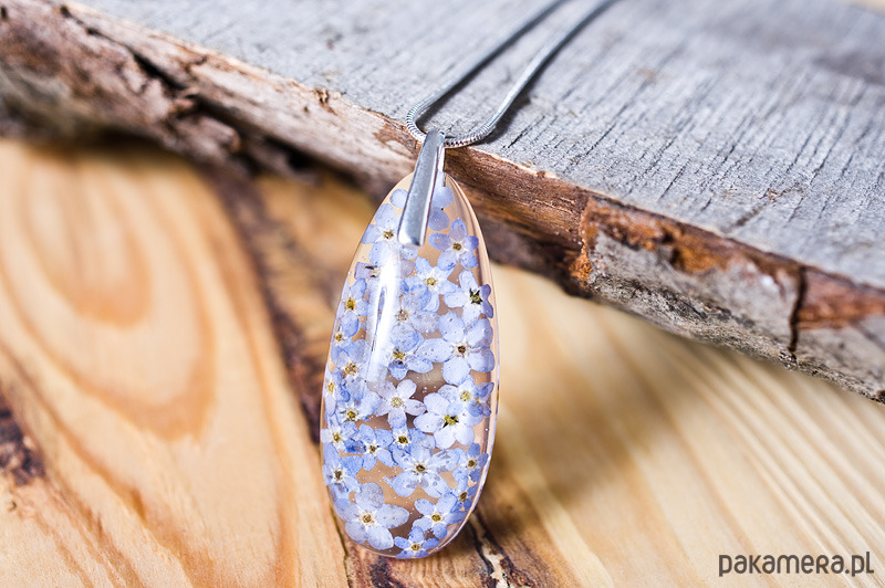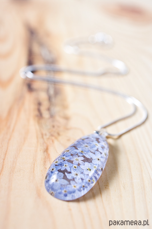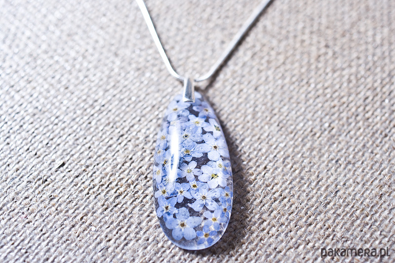 Niezapominajki w krystalicznej żywicy, oprawionej w srebro 925, to przepiękny i niepowtarzalny naszyjnik. Produkt jest lekki i elegancki. Nasza biżuteria oparta jest na autorskich projektach i formach. Naszyjnik wykonany w całości ręcznie, szlifowany i polerowany indywidualnie. Wymiary: wisiorek: 22 mm x 48 mm, łańcuszek: 60 cm. Wykorzystane materiały: żywica, srebro 925 - krawatka, stop jubilerski platerowany srebrem pr.925 - łańcuszek, kwiaty. Wykonane ręcznie.