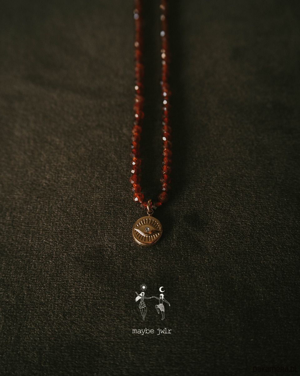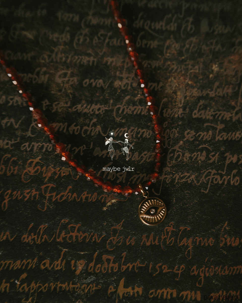 Naszyjnik z ognistych granatów z talizmanem Oka