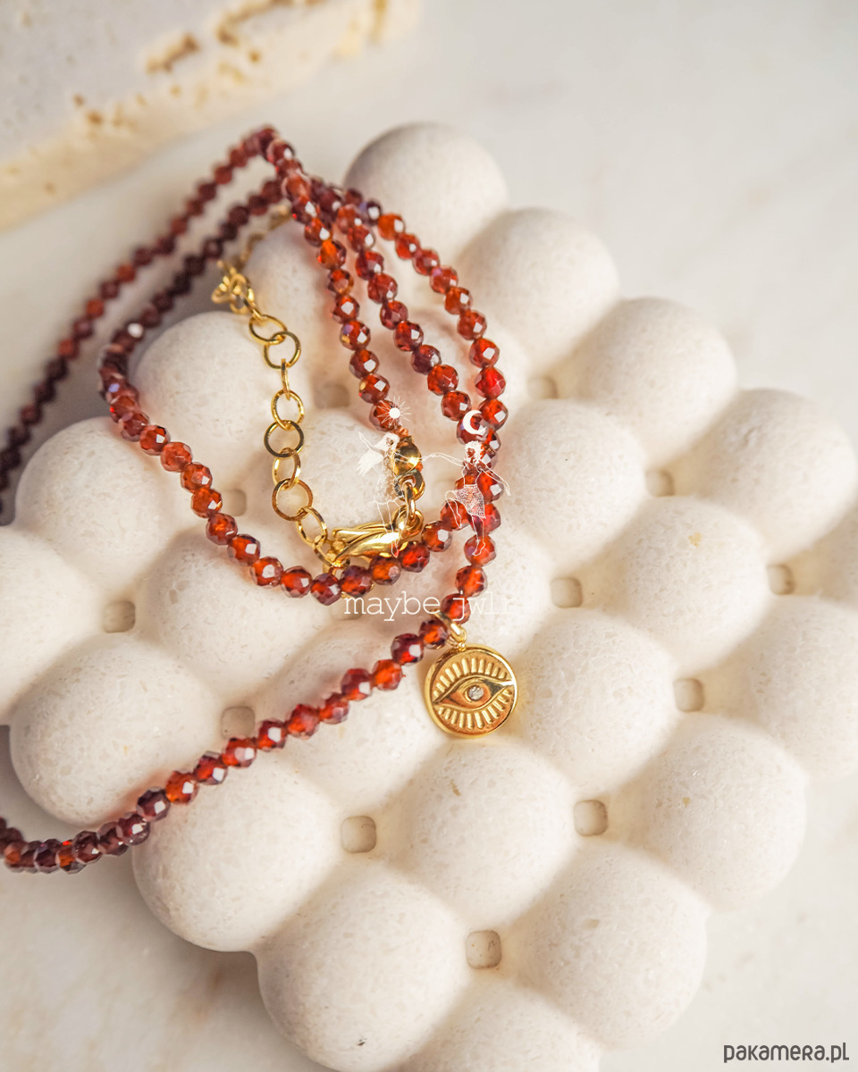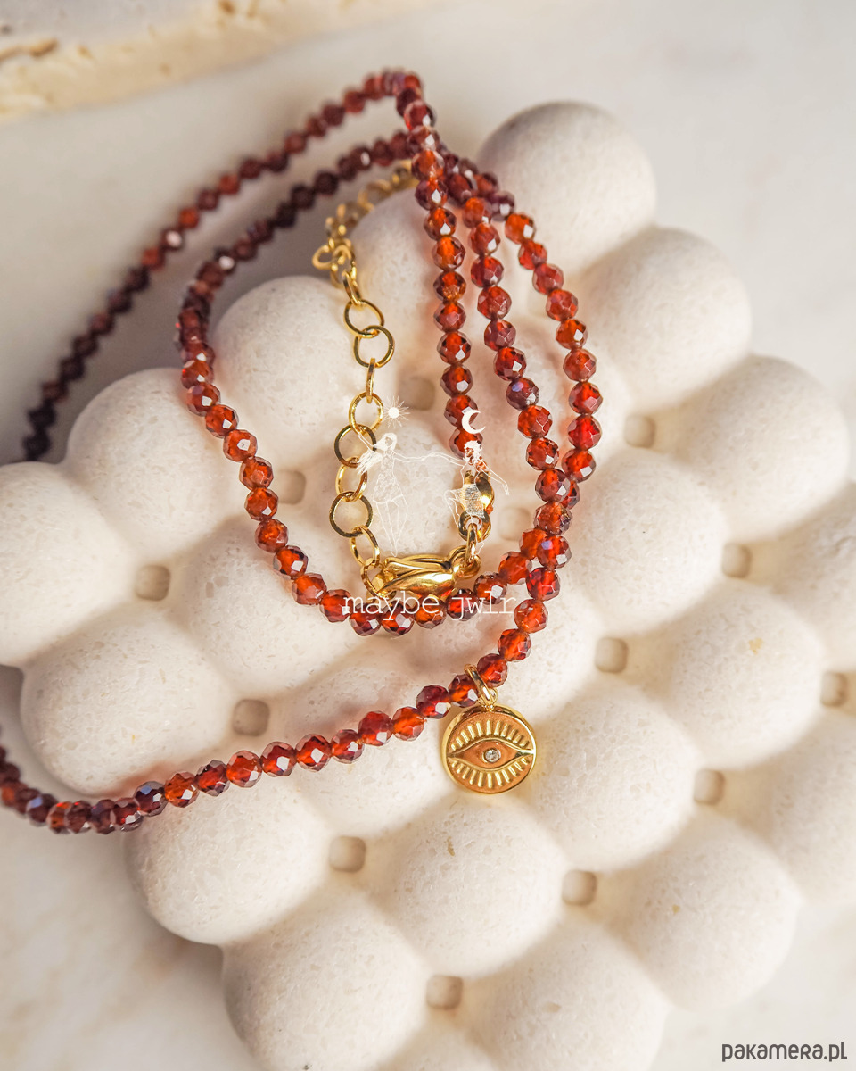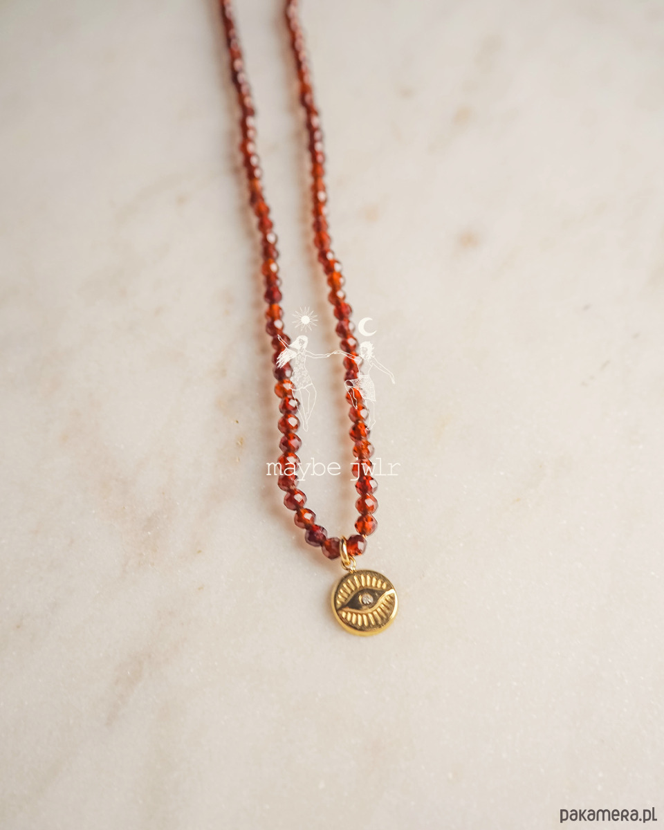 Naszyjnik z ognistych granatów z talizmanem Oka