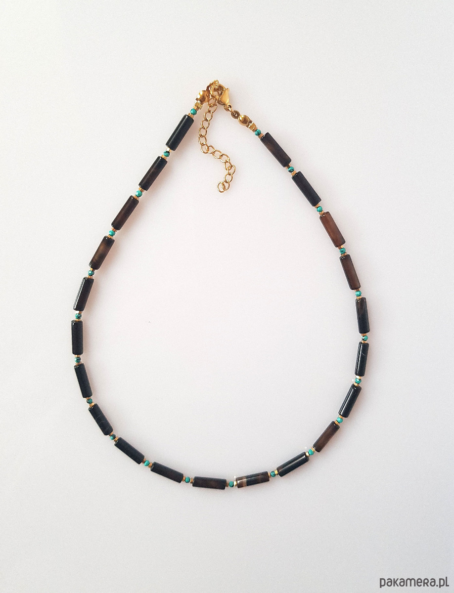 Patyczki onyksu pasiastego i drobne fasetowanego kuleczki turkusowego magnezytu.