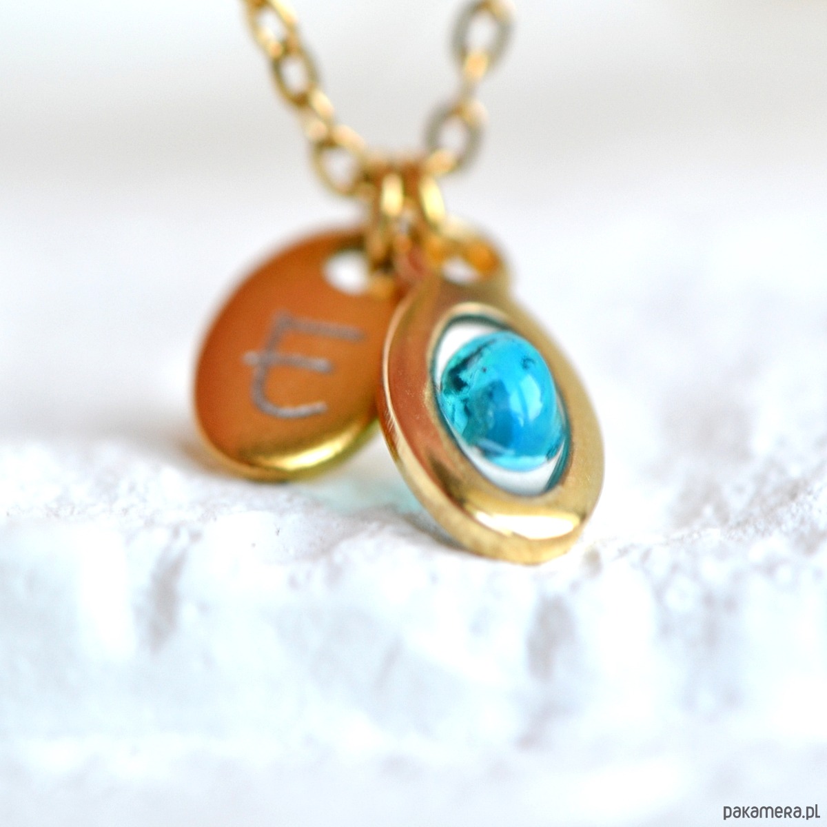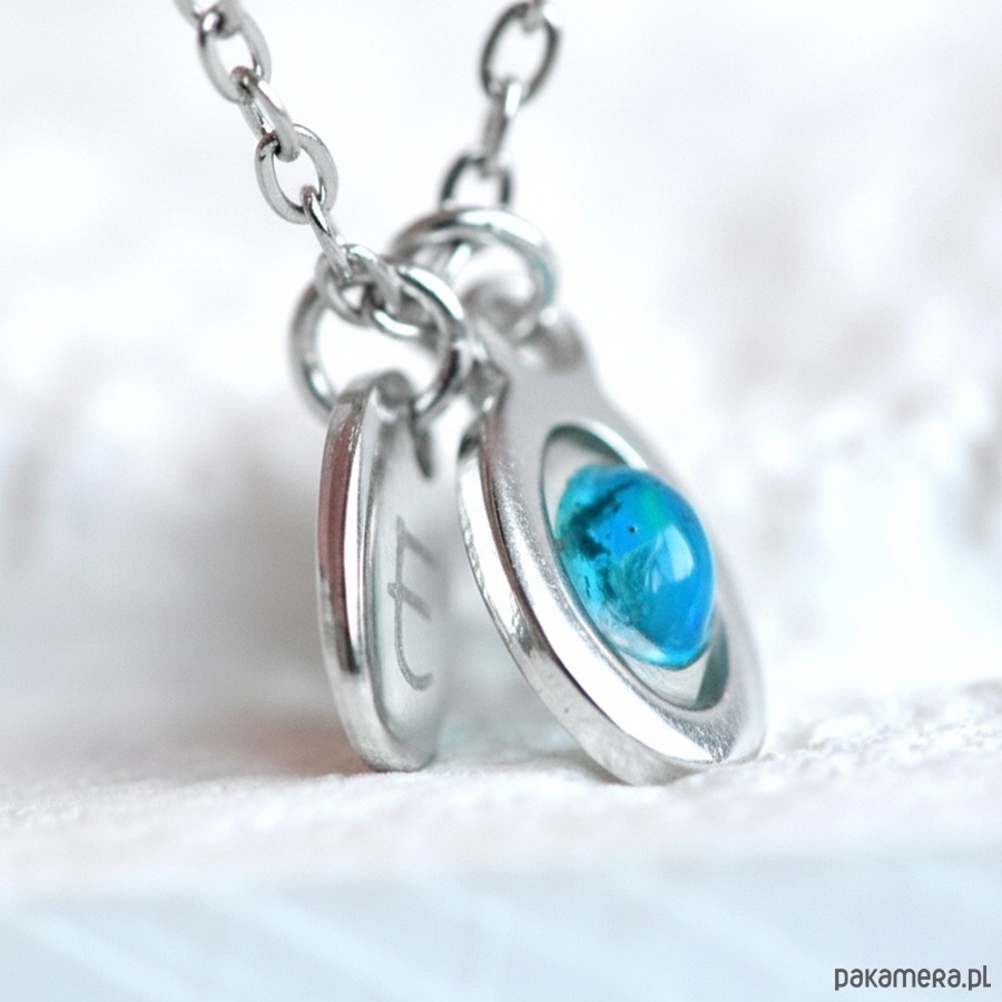 Naszyjnik z Niebieskim Opalem i Inicjałem