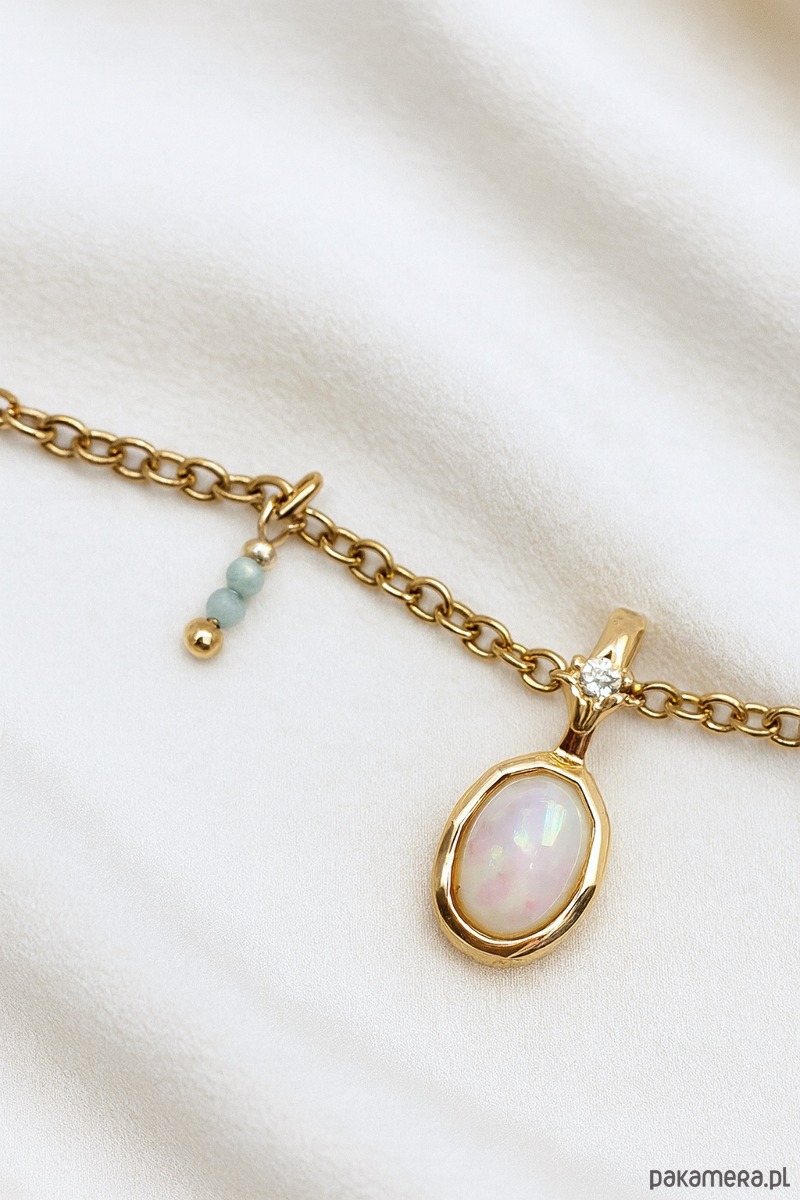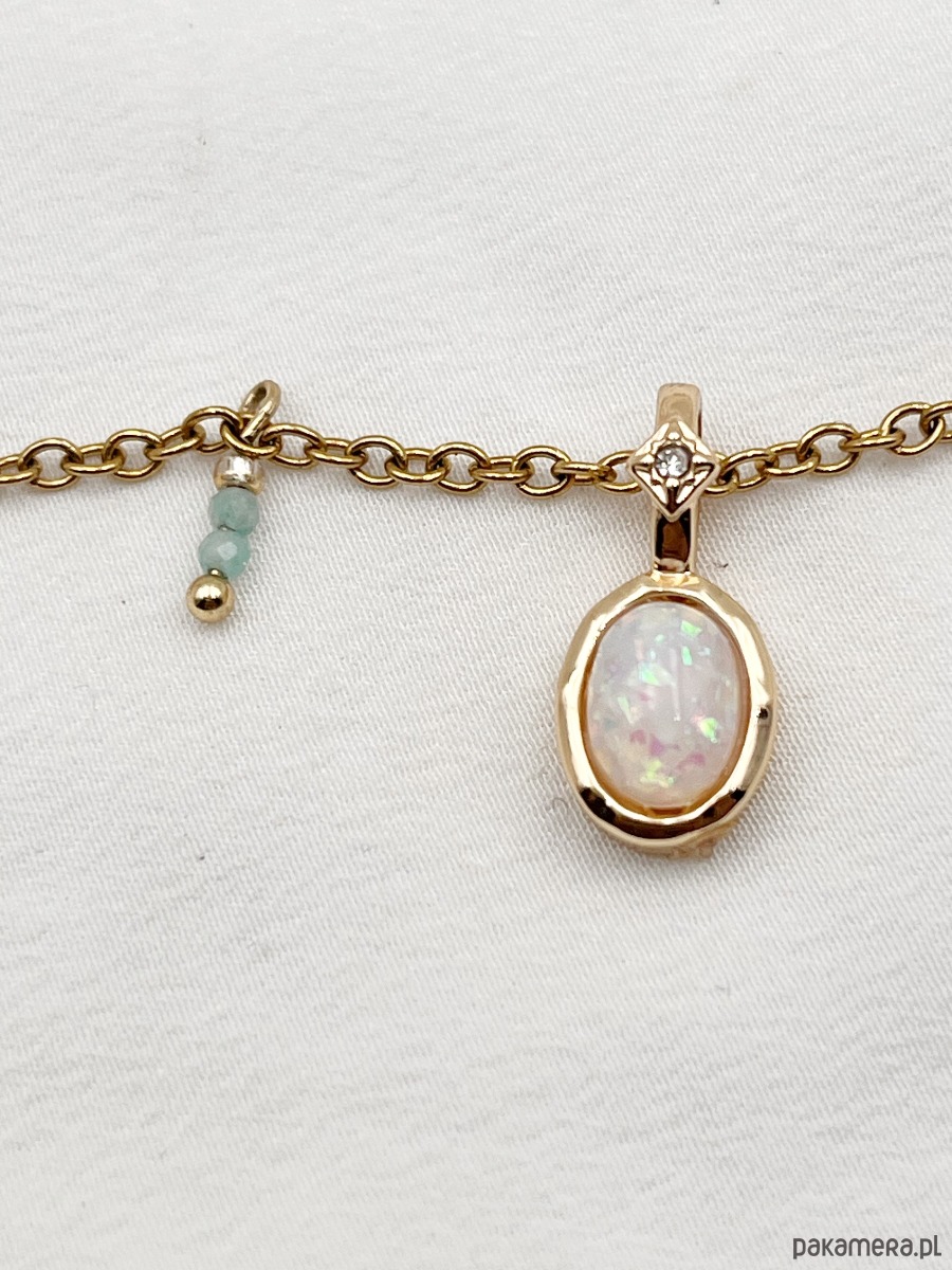 Łańcuszek z wisiorkiem z opalem, cyrkonią i perełką mini.