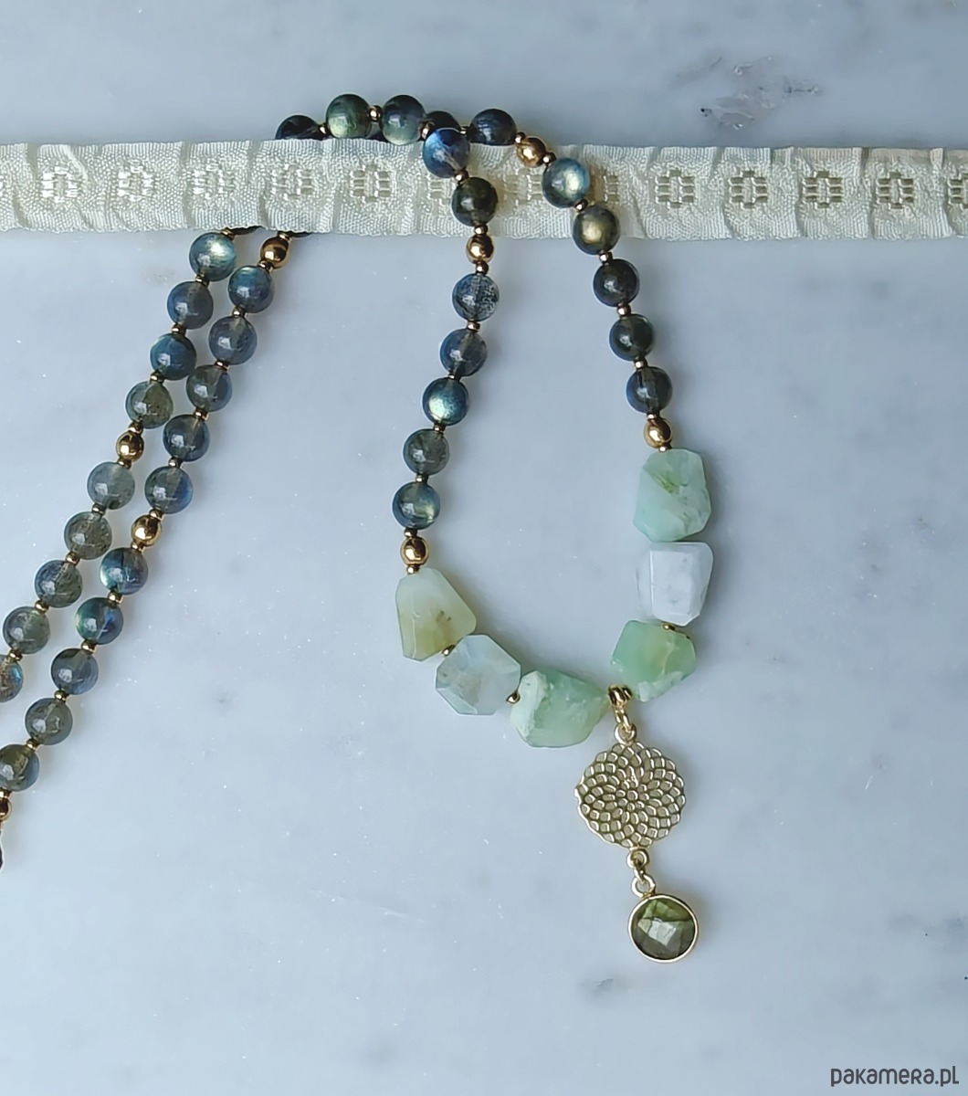 Naszyjnik z opalizacją - chryzopraz i labradoryt
