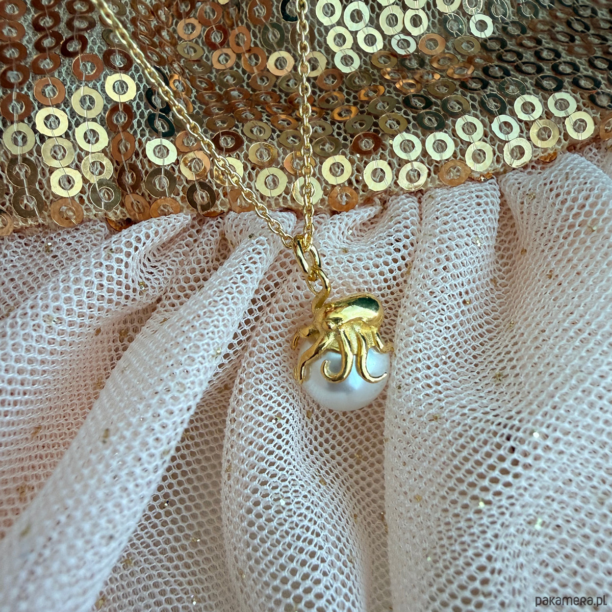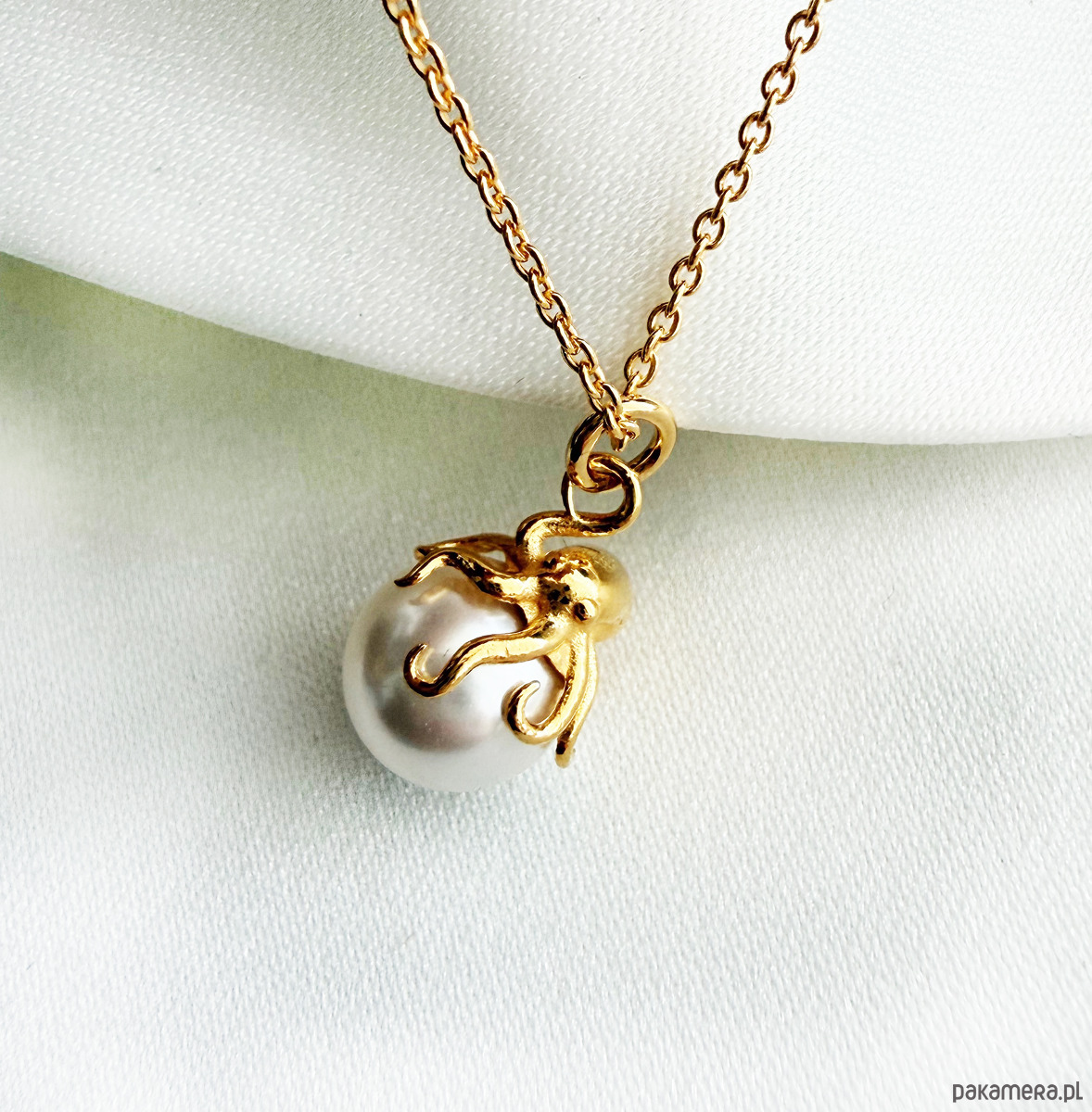 Naszyjnik z ośmiornicą i perłą, złota ośmiornica na wakacje