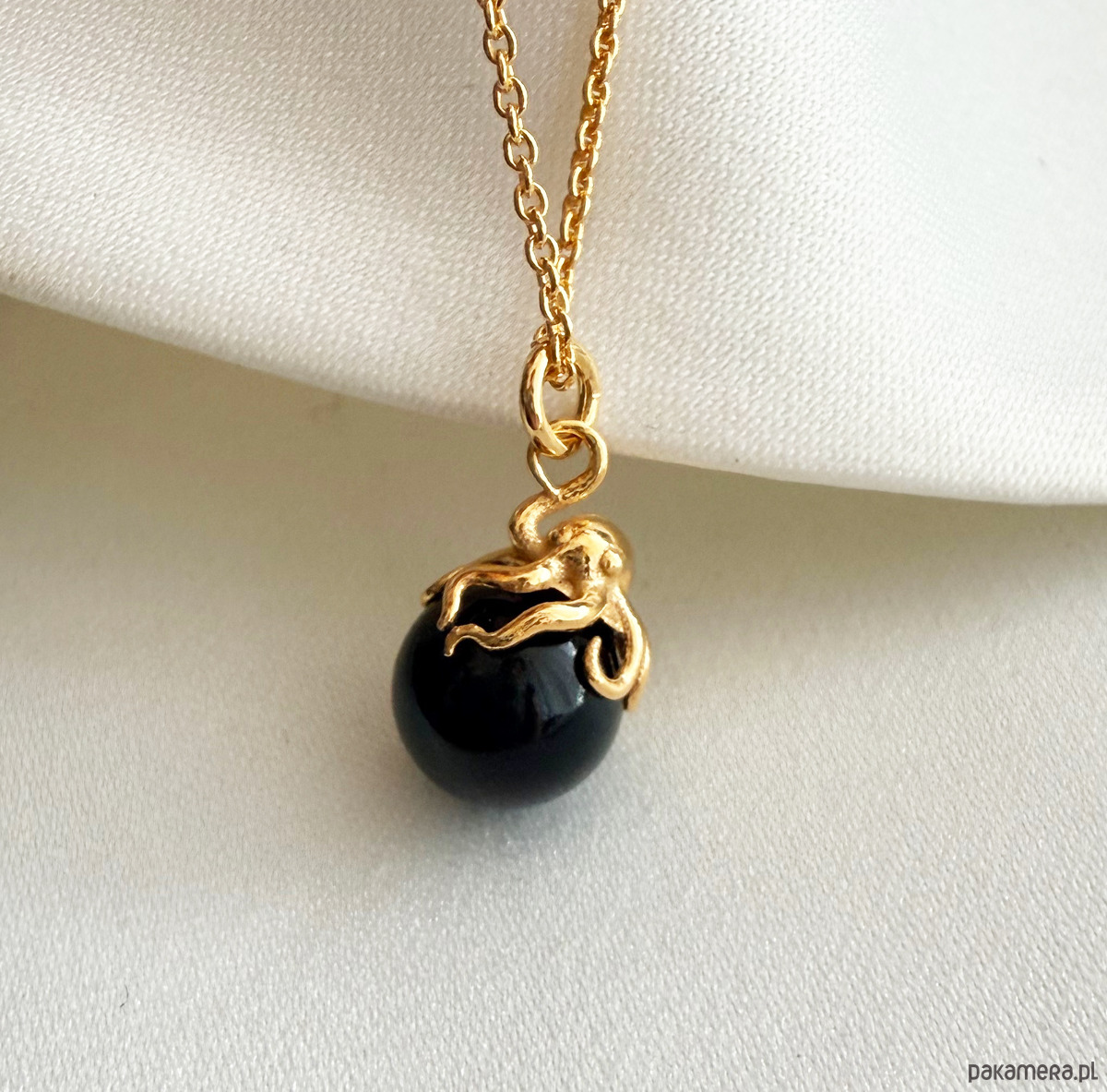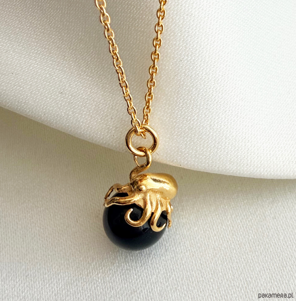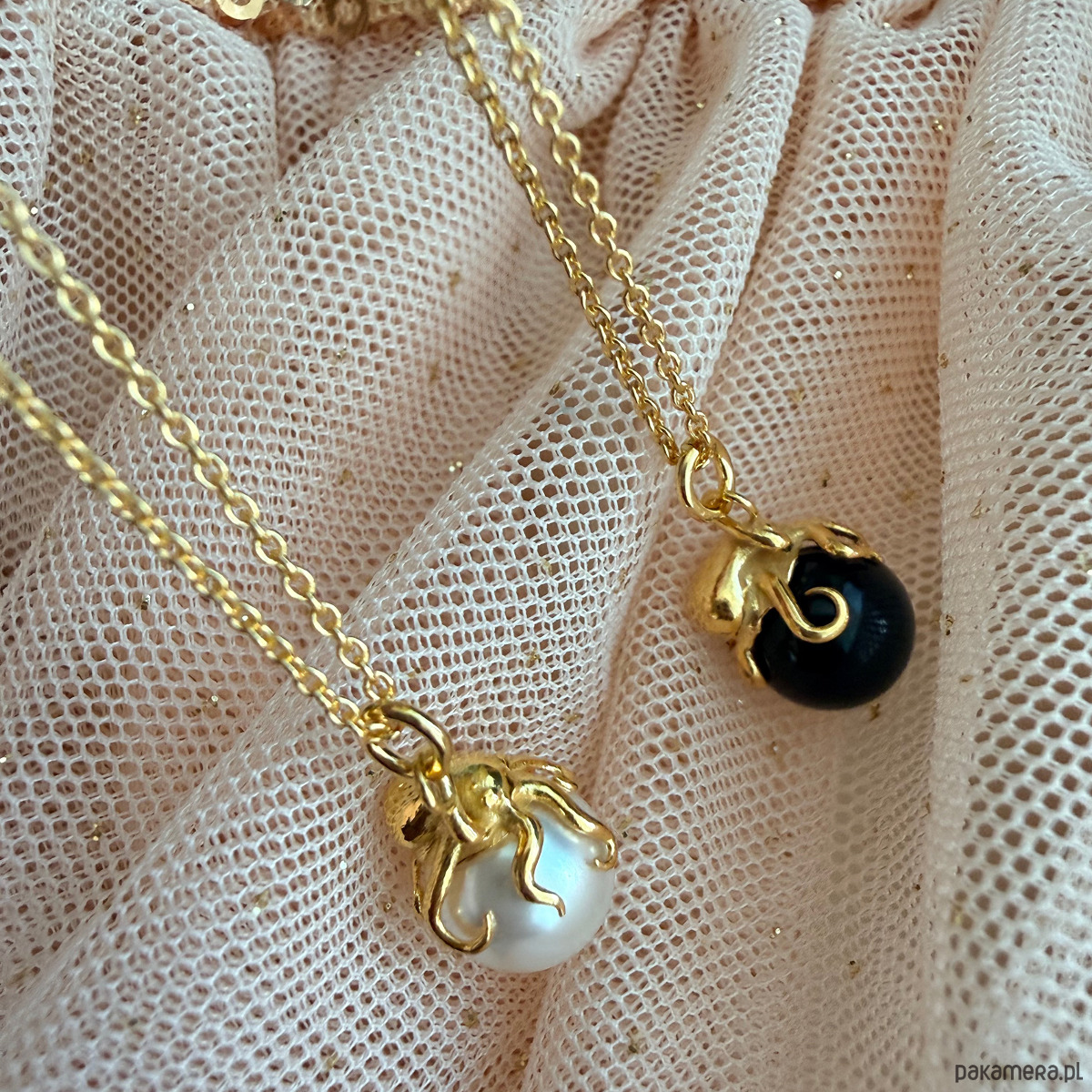 Piękny naszyjnik z wyjątkową zawieszką w kształcie ośmiornicy, która subtelnie oplata perłę. Zachwyca realistycznym wykonaniem oraz dbałością o detale.Jego delikatna, a zarazem wyrazista forma inspirowana naturą przywodzi na myśl letnie chwile spędzone nad brzegiem oceanu.