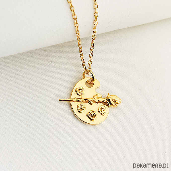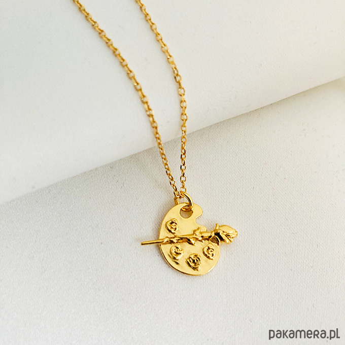 Wyjątkowy naszyjnik z zawieszką w kształcie palety malarskiej z pędzlem uformowanym na kształt róży. Artystyczny detal i symbolika kompozycji nawiązują do twórczości oraz niezwykłej osobowości Fridy Kahlo.