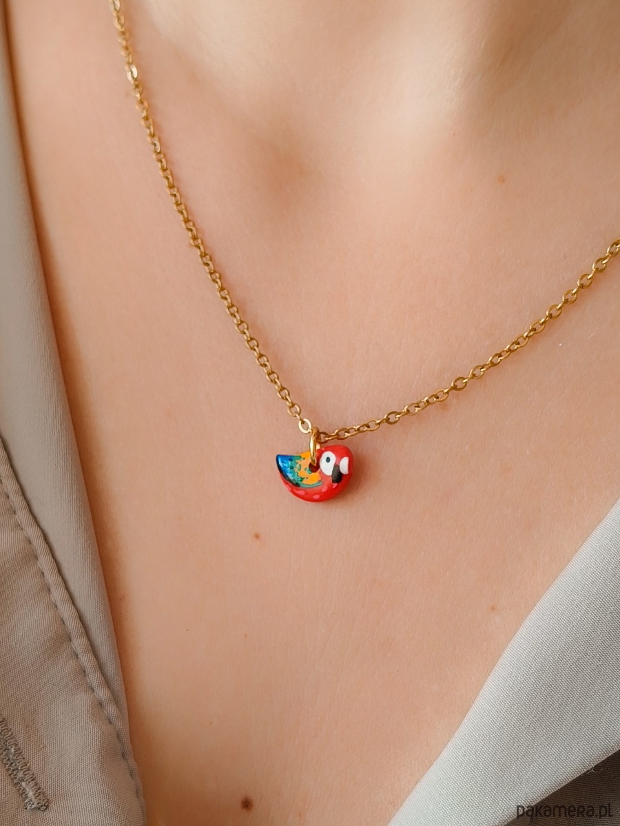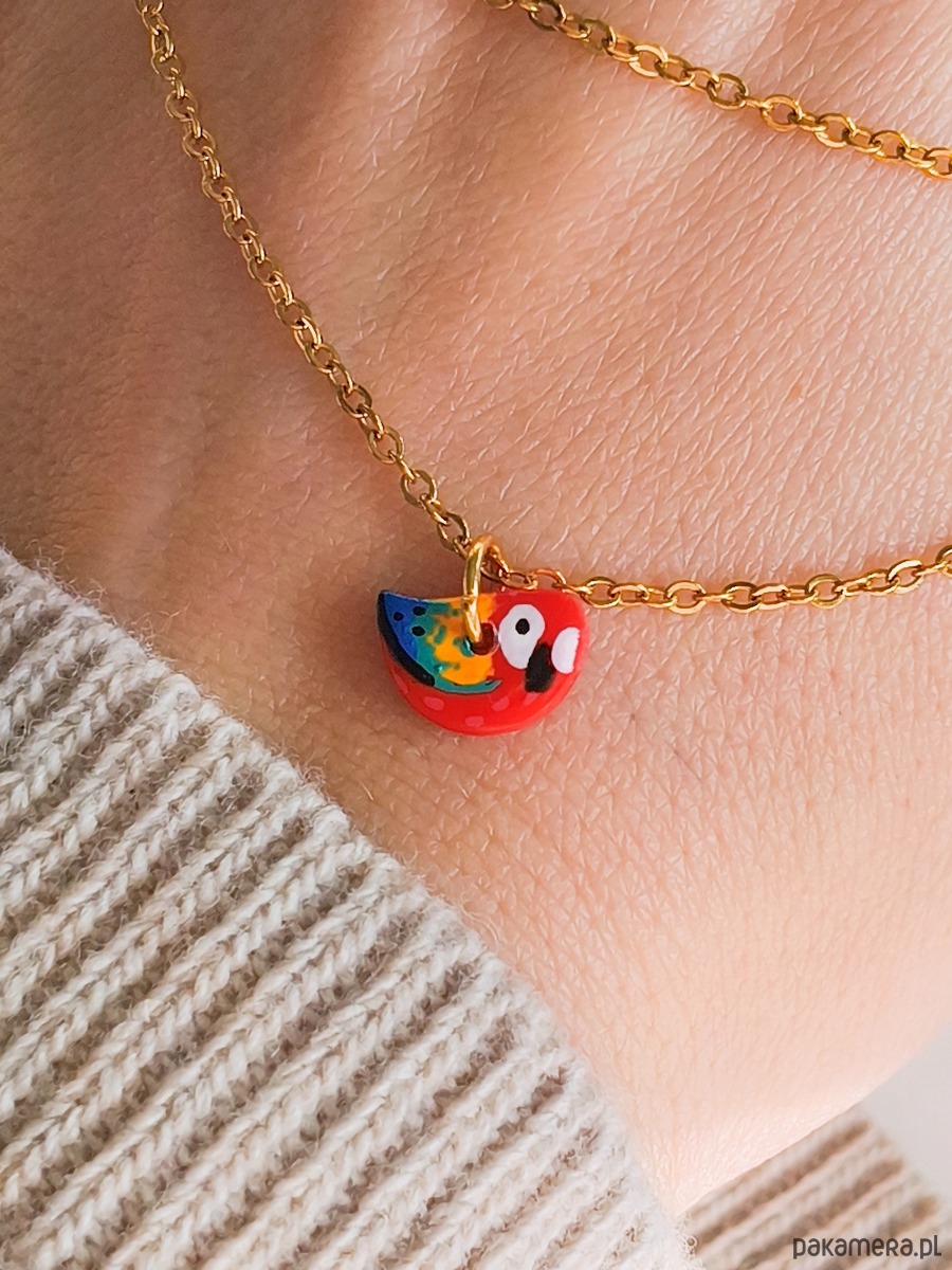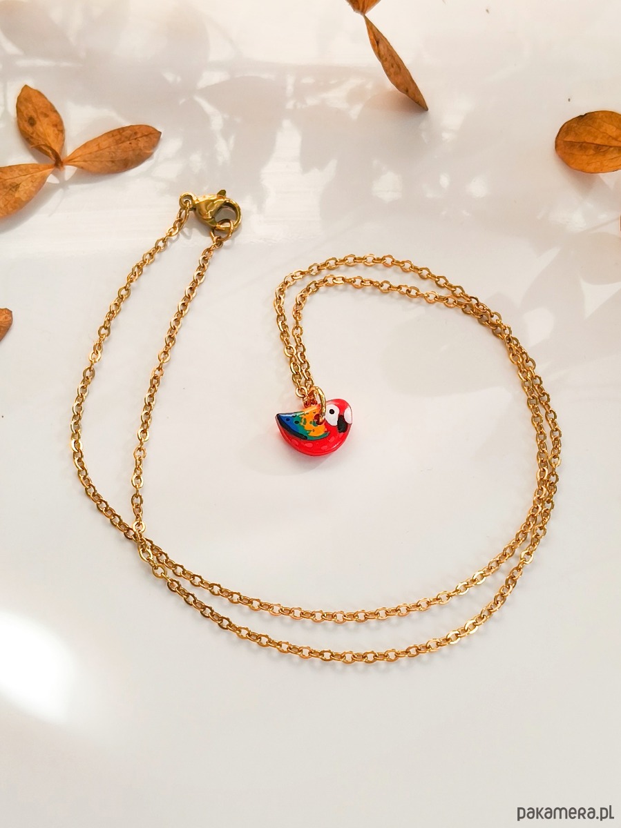 Naszyjnik z papugą arą, wisiorek dla ornitologa, dla pracownika zoo, boho