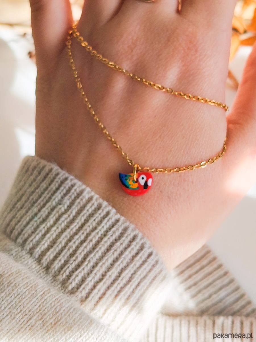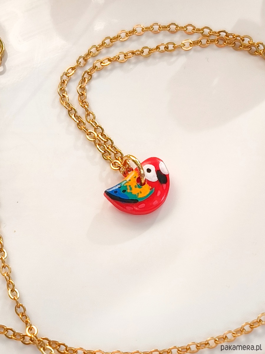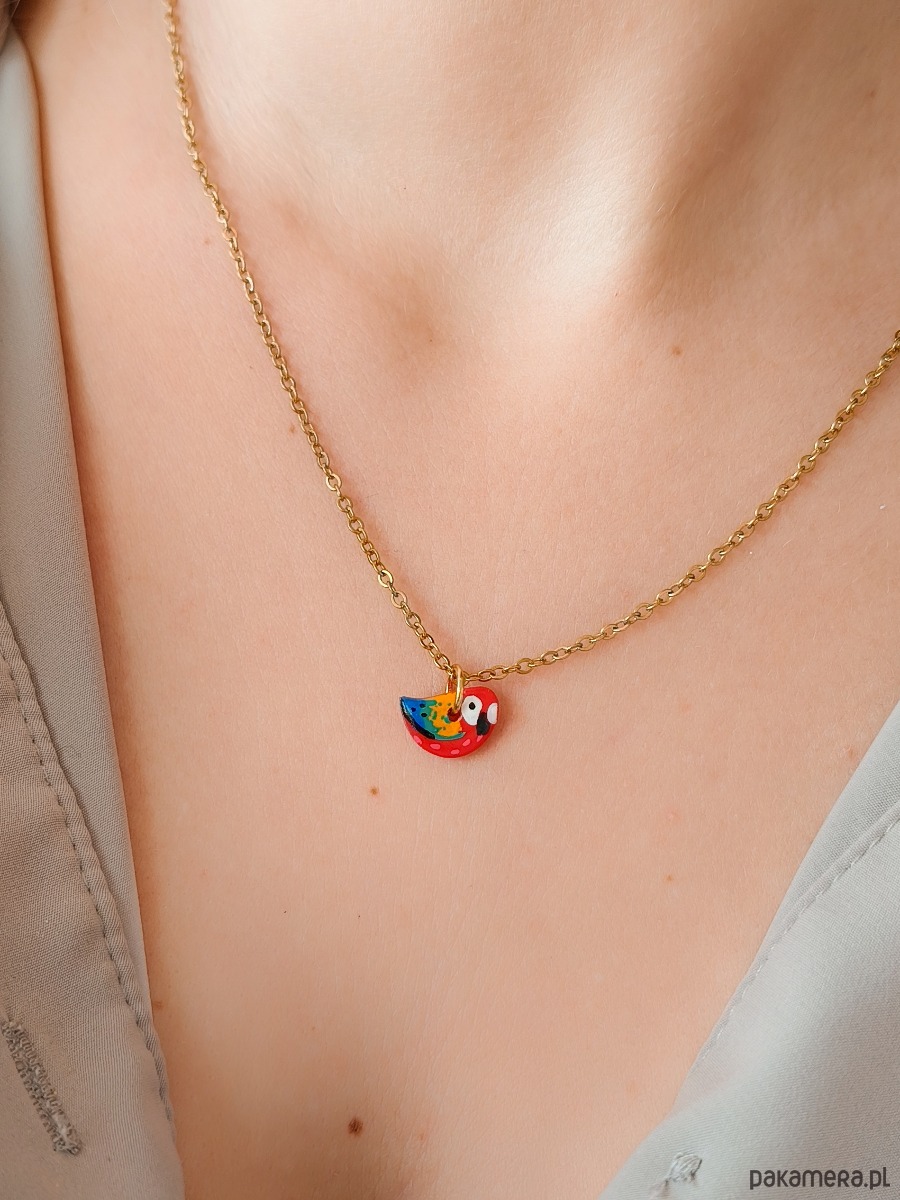 Naszyjnik z papugą arą, wisiorek dla ornitologa, dla pracownika zoo, boho