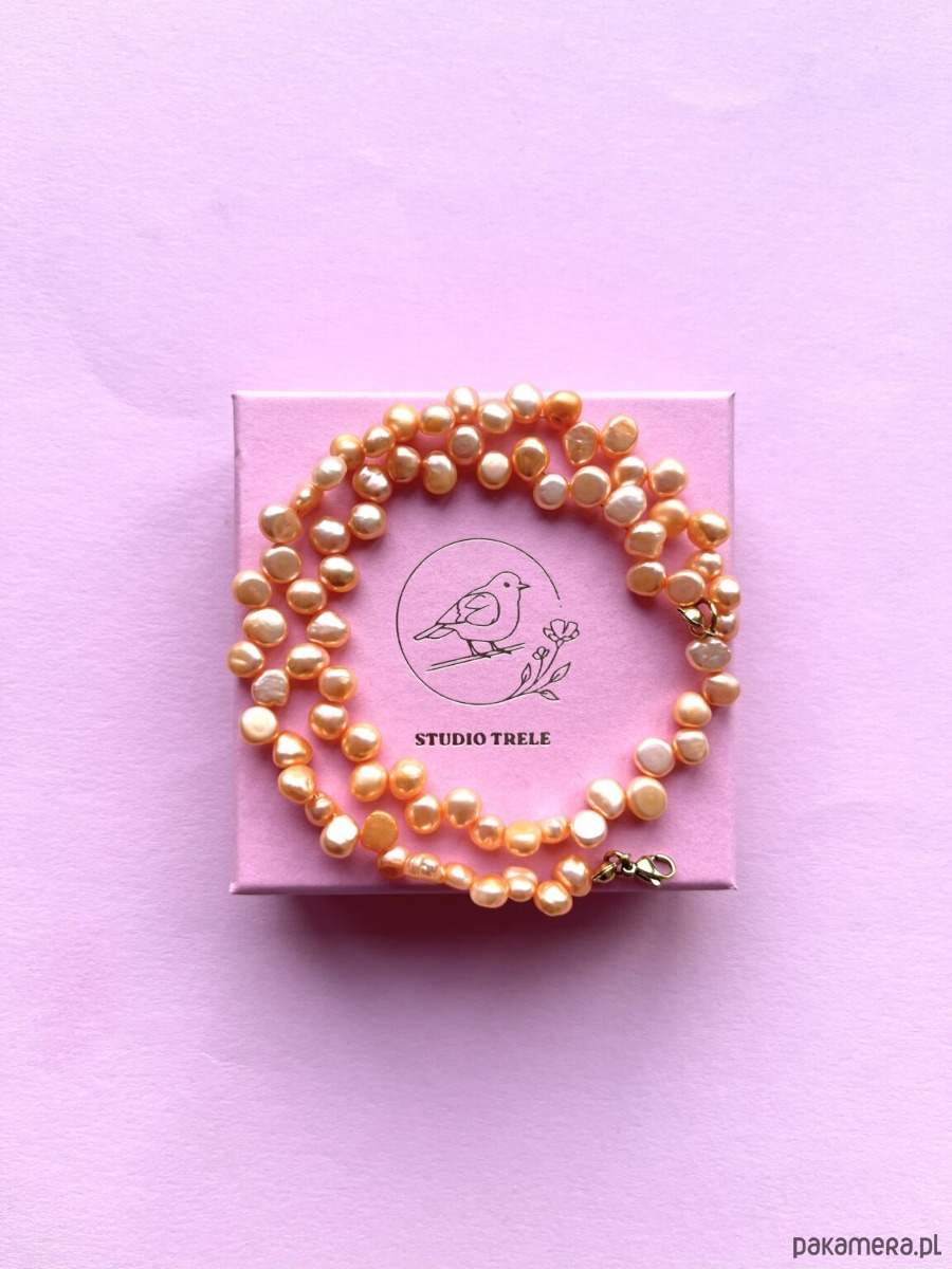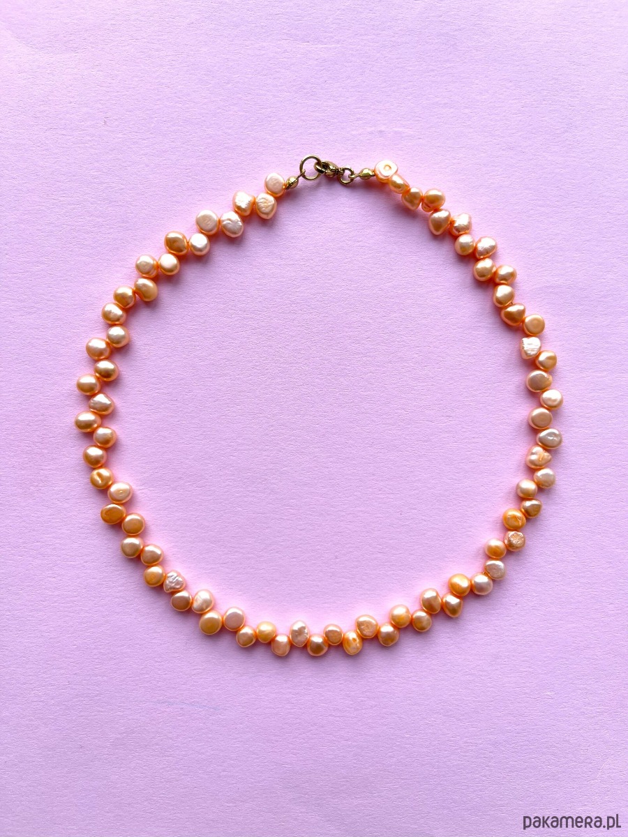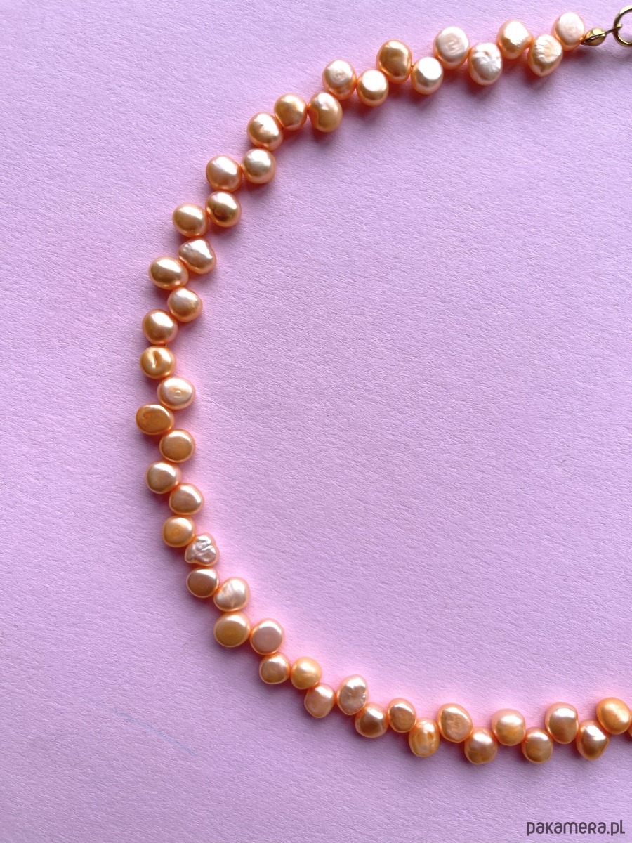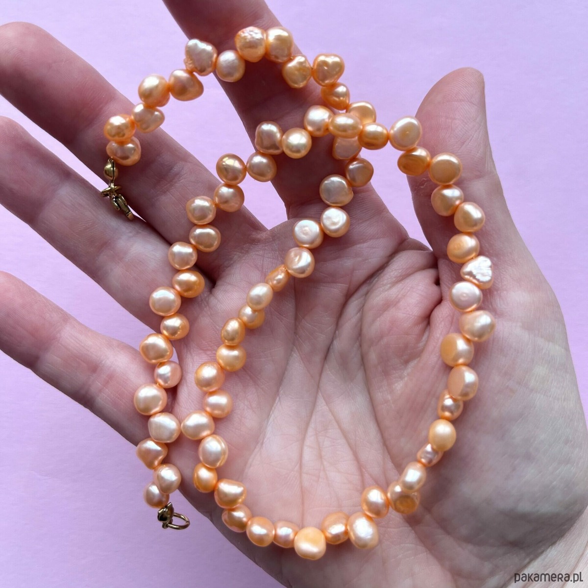 Naszyjnik z brzoskwiniowych pereł słodkowodnych
