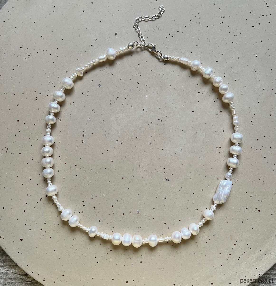 Minimalistyczny naszyjnik wykonany z nieregularnych pereł hodowlanych. Elementy zapięcia zostały wykonane ze srebra próby 925. Długość naszyjnika 40 + 5 cm przedłużki. Każdy naszyjnik HAVANA jest unikatowy.