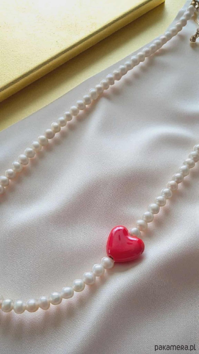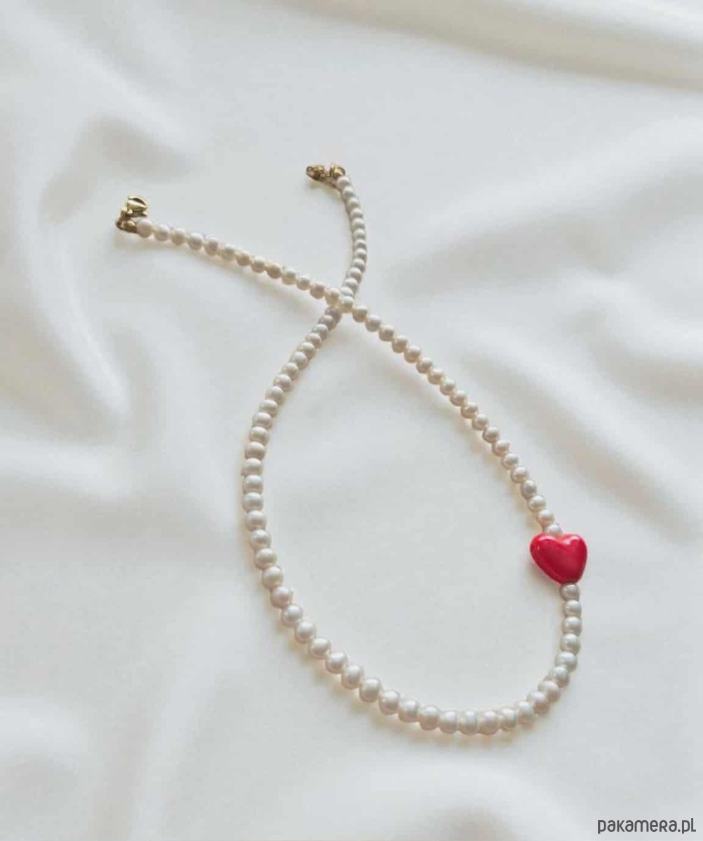 Subtelny, kobiecy i pełen znaczenia — naszyjnik z prawdziwych pereł hodowlanych ozdobiony ceramicznym czerwonym sercem to połączenie klasyki i delikatnej symboliki miłości.