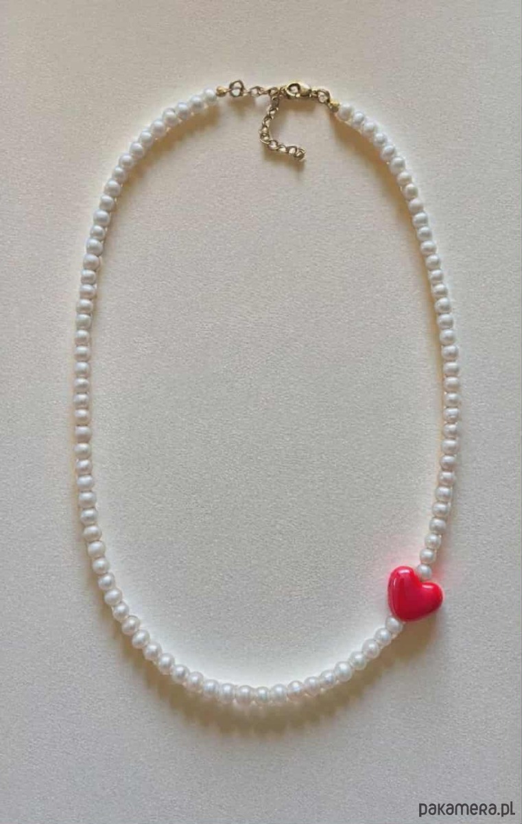 NASZYJNIK Z PEREŁ HODOWLANYCH Z CZERWONYM SERCEM CERAMICZNYM 💖
