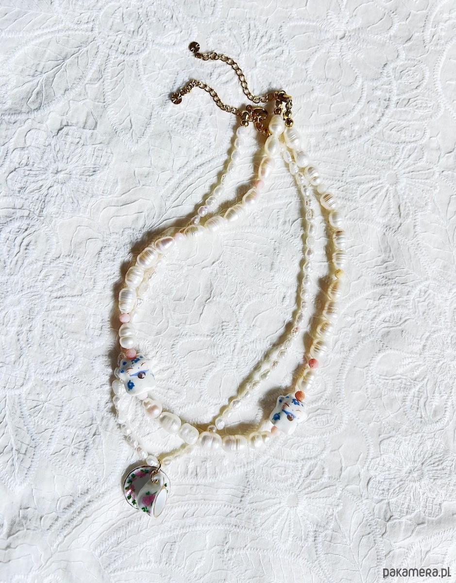 Świetnie komponuje się z naszyjnikiem z mini filiżanką, tworząc modny zestaw z nutą romantyzmu i z vintage klimatem.