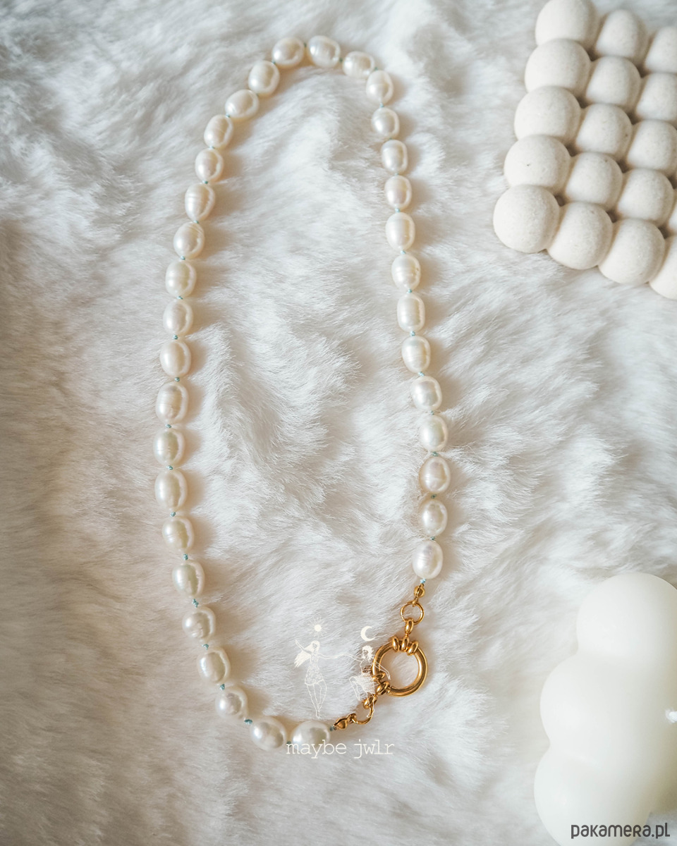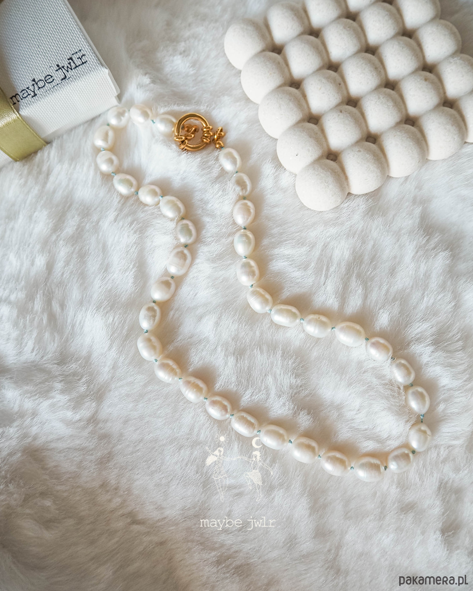 Elegancki naszyjnik z nieregularnych pereł (8x7 mm) to ponadczasowa biżuteria, która podkreśla kobiecą subtelność i naturalne piękno. Ręczne wykonanie i nawleczenie pereł na delikatną jedwabną nić sprawia, że każda sztuka jest unikatowa i wyjątkowa.