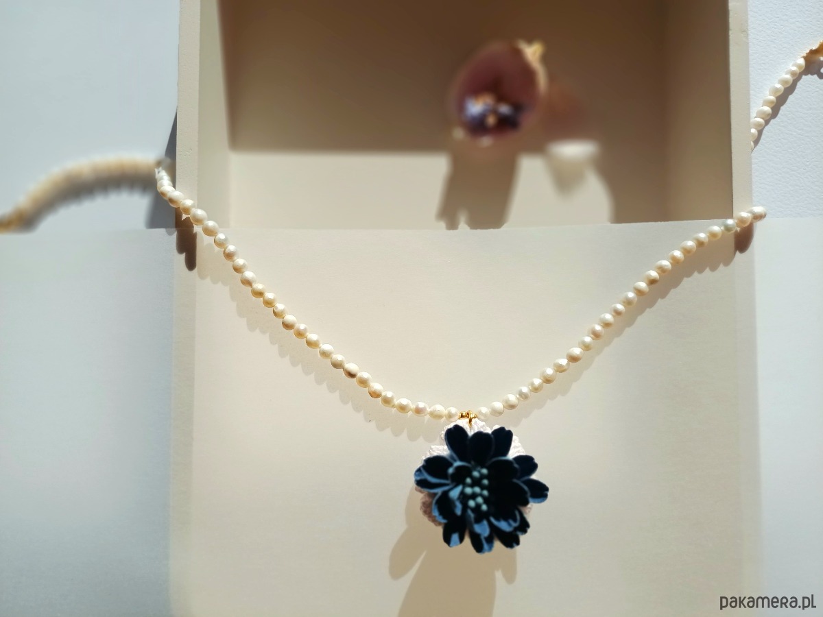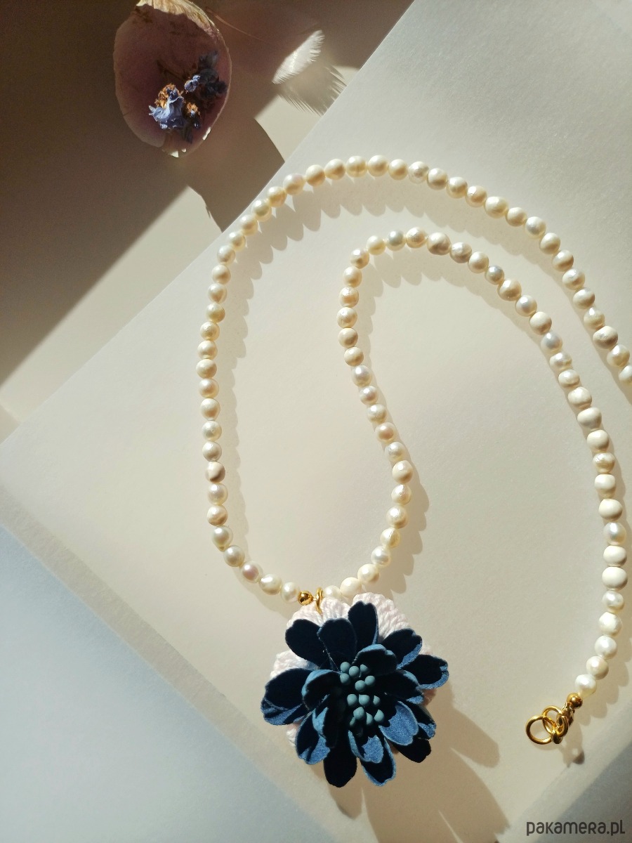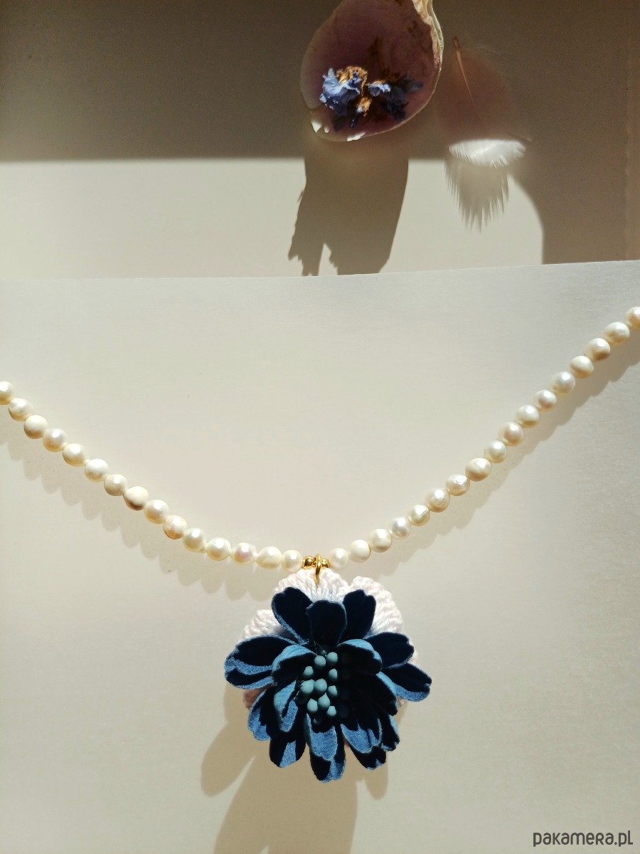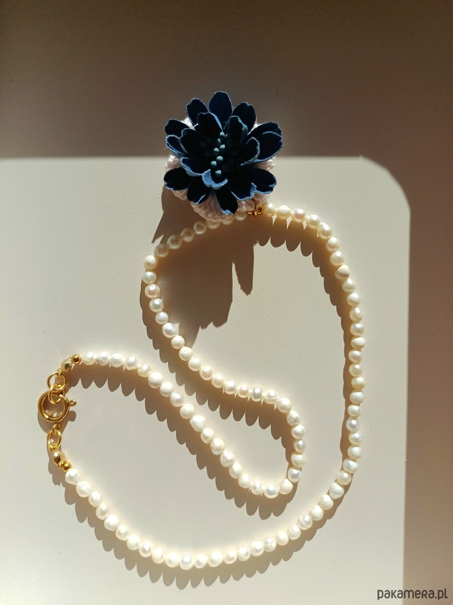 Naszyjnik z pereł naturalnych i aplikacją - kwiatem