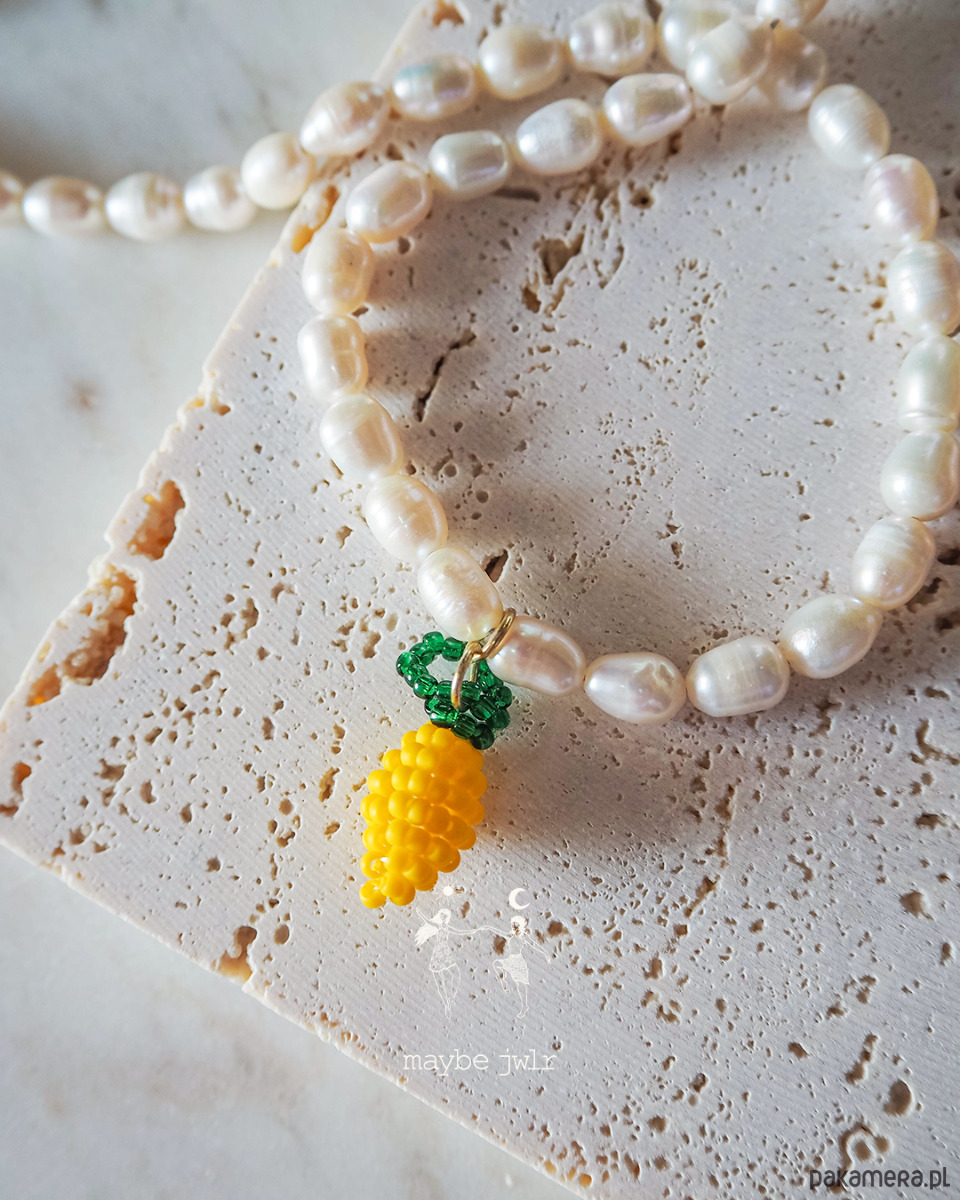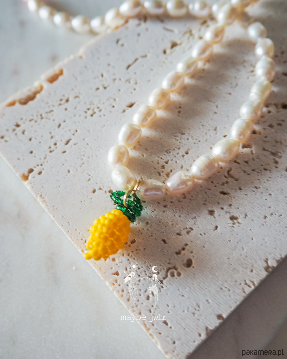 Naszyjnik z pereł naturalnych z cytrynką