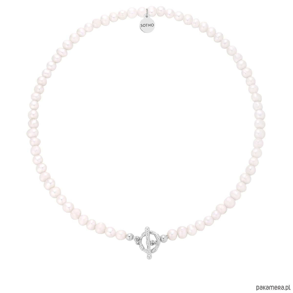 Naszyjnik wykonany z naturalnych pereł słodkowodnych, zdobiony zapięciem i logo marki. Wszystkie elementy wykonane ze srebra 925. Perły są nieregularne, unikatowe, delikatnie różnią się od siebie i mogą różnić się od tych na zdjęciu.