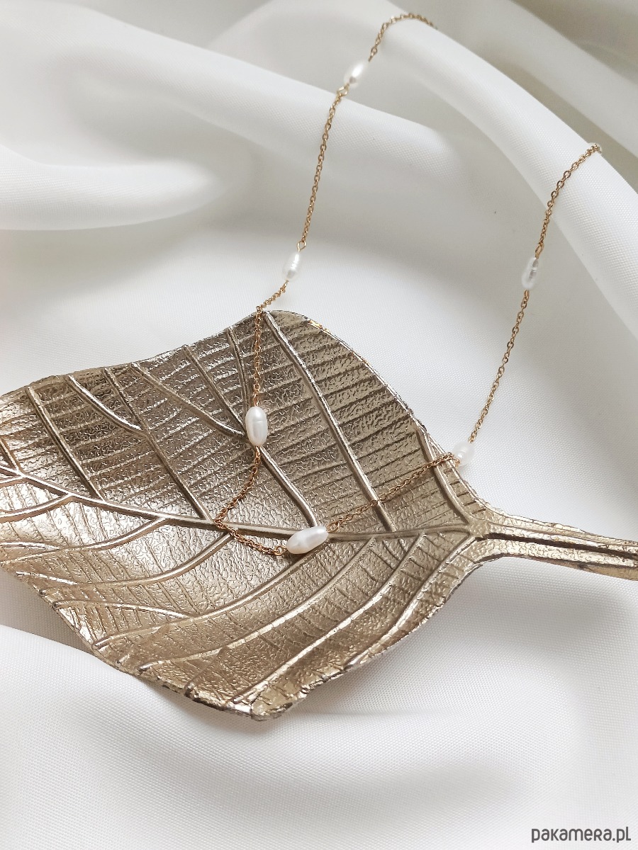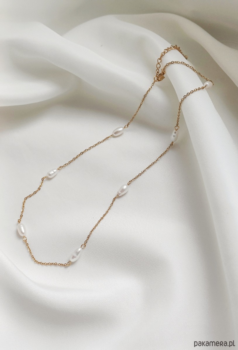 Naszyjnik z perłami słodkowodnymi wykonany z wysokiej jakości hipoalergicznej stali szlachetnej.