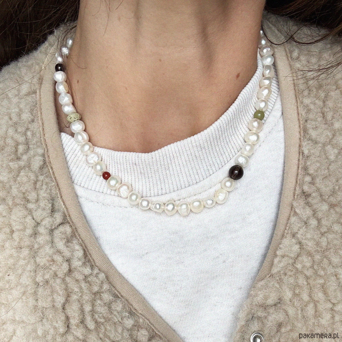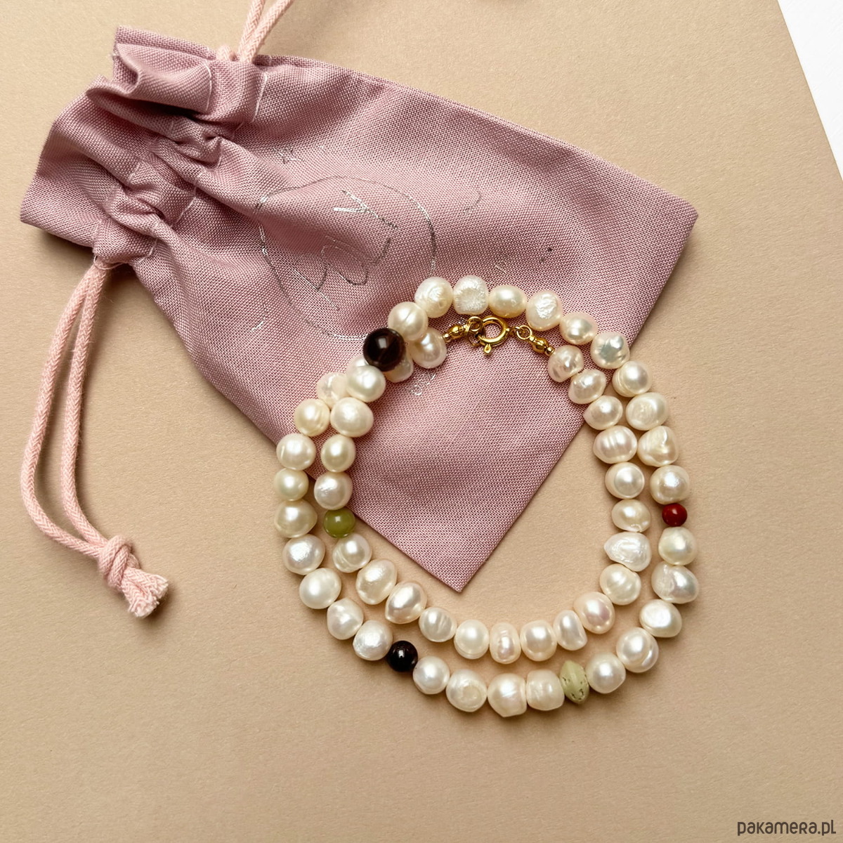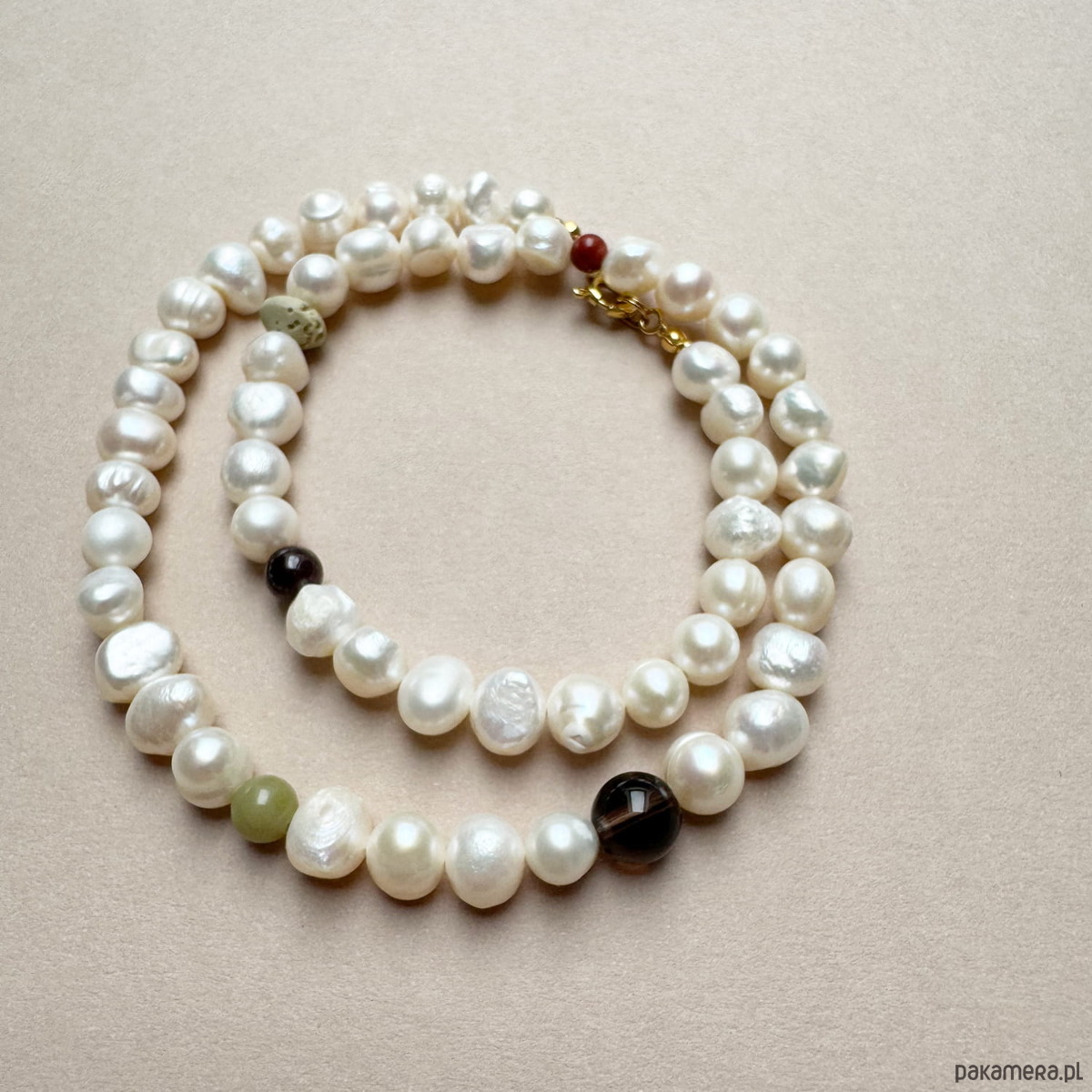 Naszyjnik z pereł hodowlanych i kamieni naturalnych FALL PEARL.