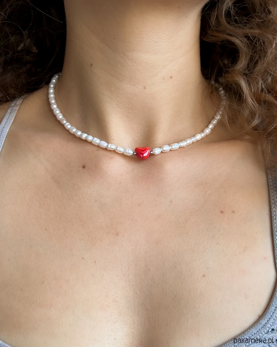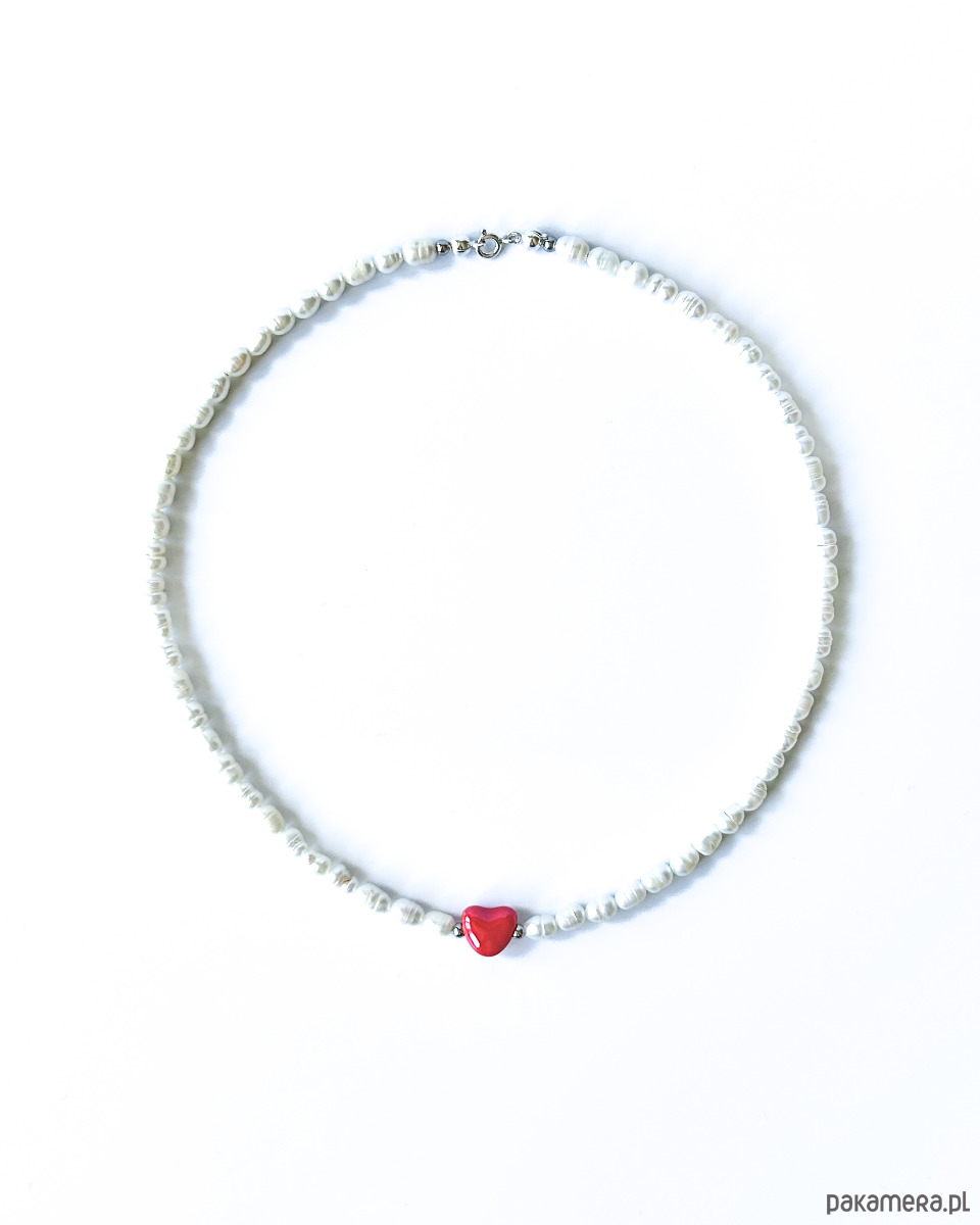 Naszyjnik z pereł z ceramicznym sercem midi