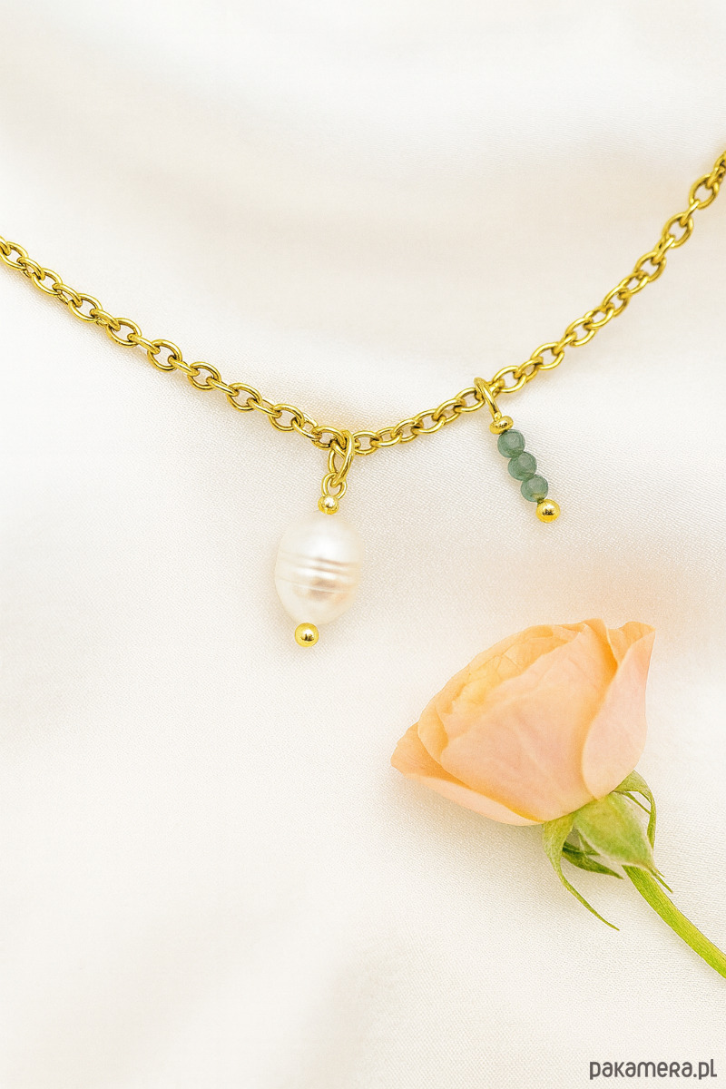 - Materiał: kamień naturalny, perły, stal chirurgiczna