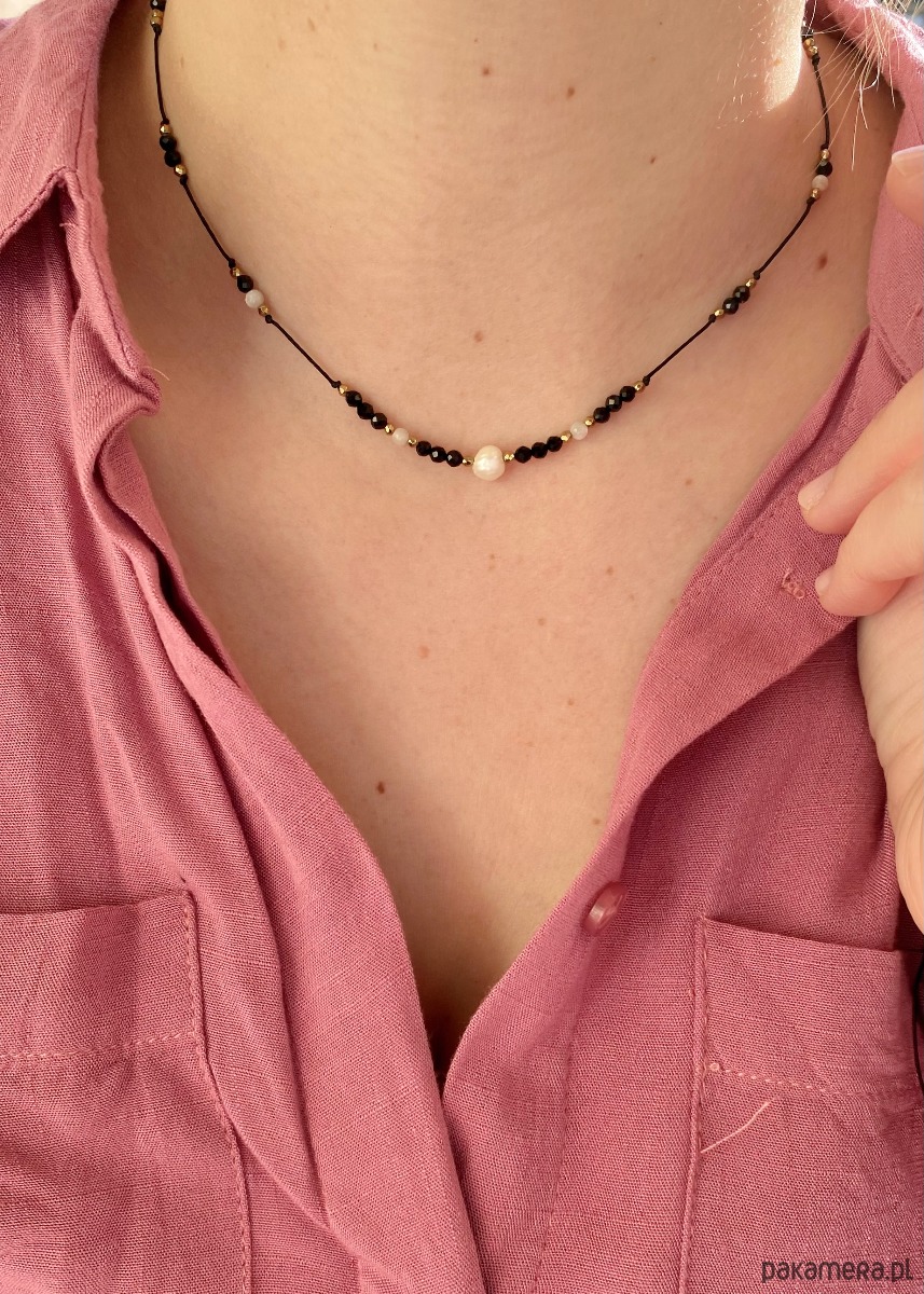 Naszyjnik z perłą i turmalinem na czarnym sznurku doskonale sprawdzi się zarówno jako dodatek do codziennych stylizacji, jak i jako ozdoba na wyjątkowe wyjścia. Jego uniwersalny design sprawia, że można nosić go zarówno solo, jak i w zestawieniu z innymi naszyjnikami, tworząc unikatowe i stylowe kompozycje.