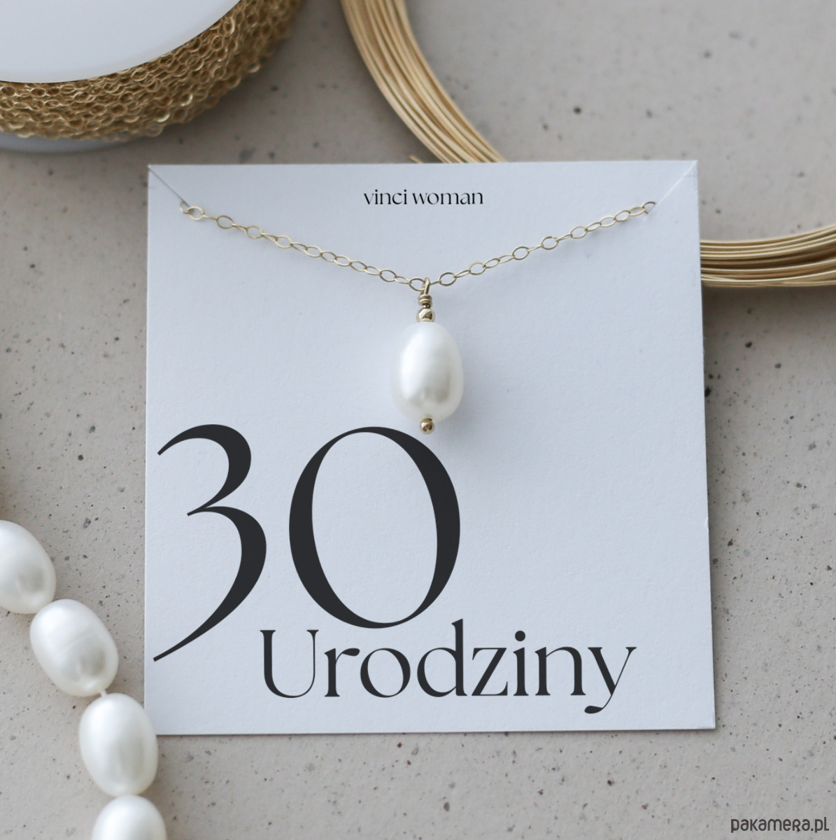 Do naszyjnika dołączona jest elegancka karteczka „30 urodziny” – idealna na prezent.