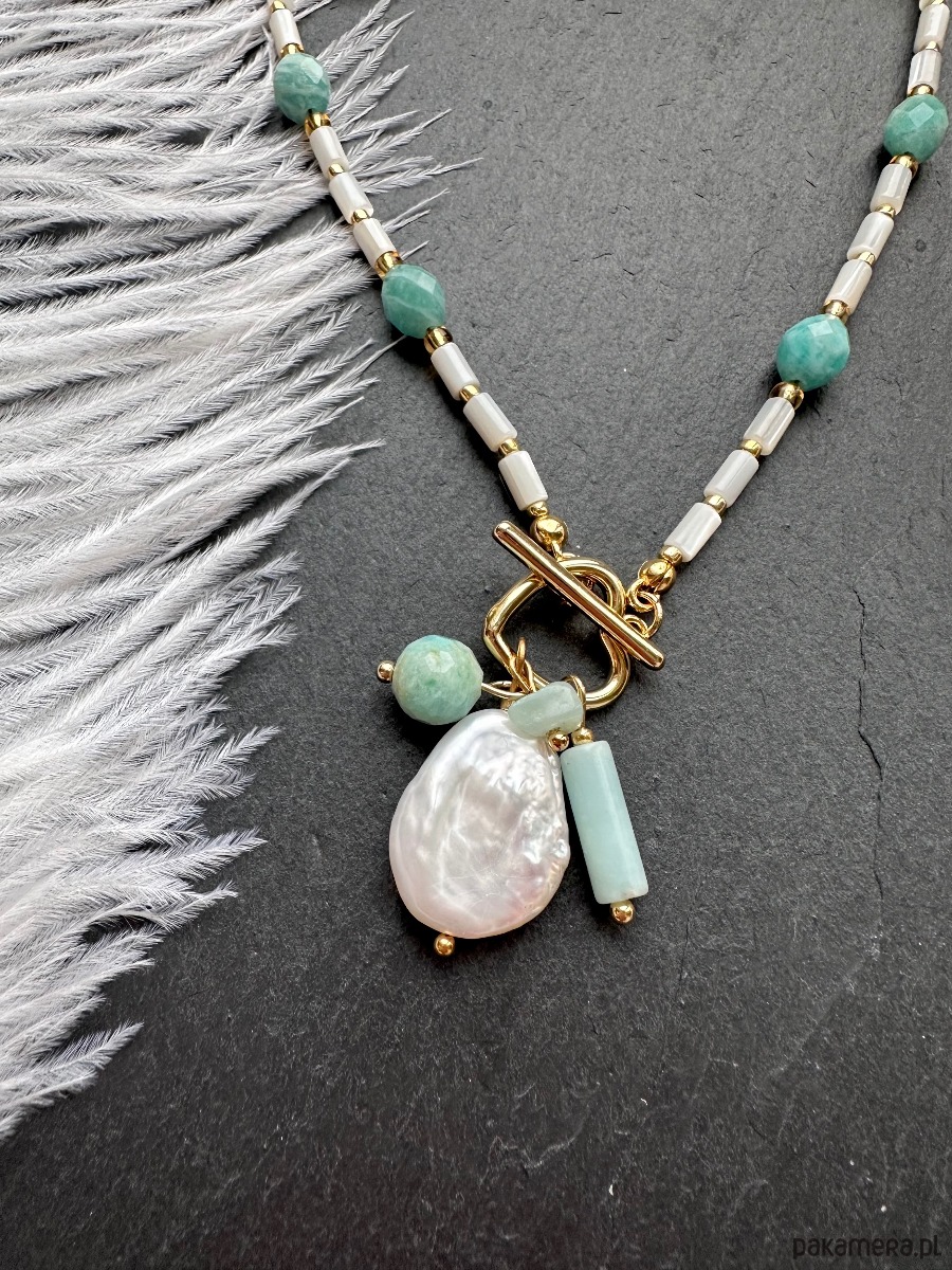 #bizuteriahandmade #naszyjnik #perlanaturalna #amazonit