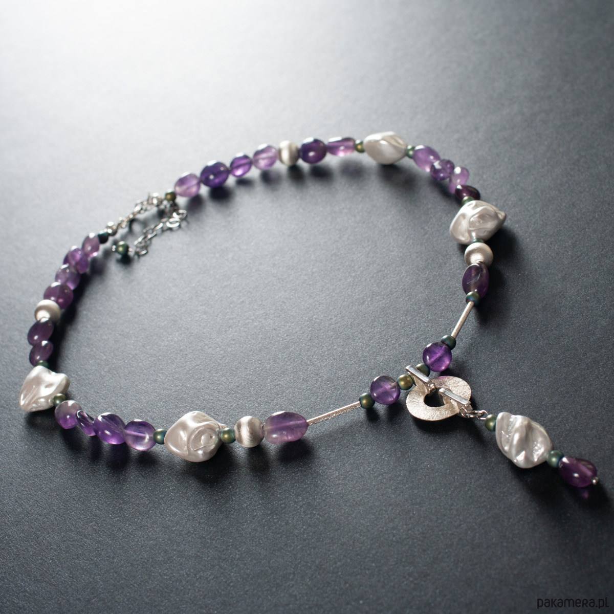 Naszyjnik z perłami i ametystami. [PN6]