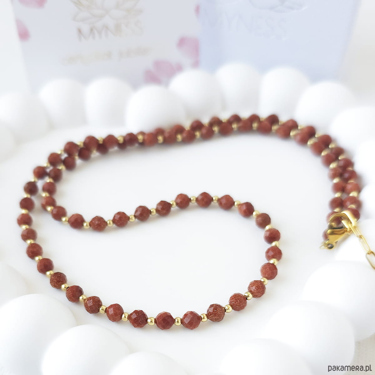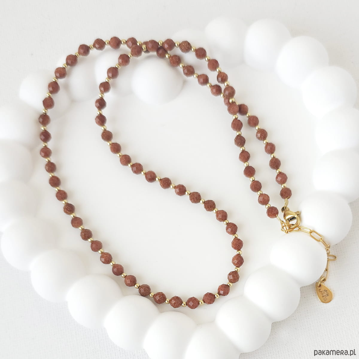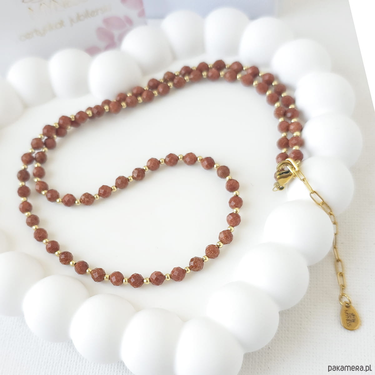 Elegancki i niepowtarzalny naszyjnik wykonany z kamieni półszlachetnych / jubilerskich, wykończony elementami ze stali szlachetnej.