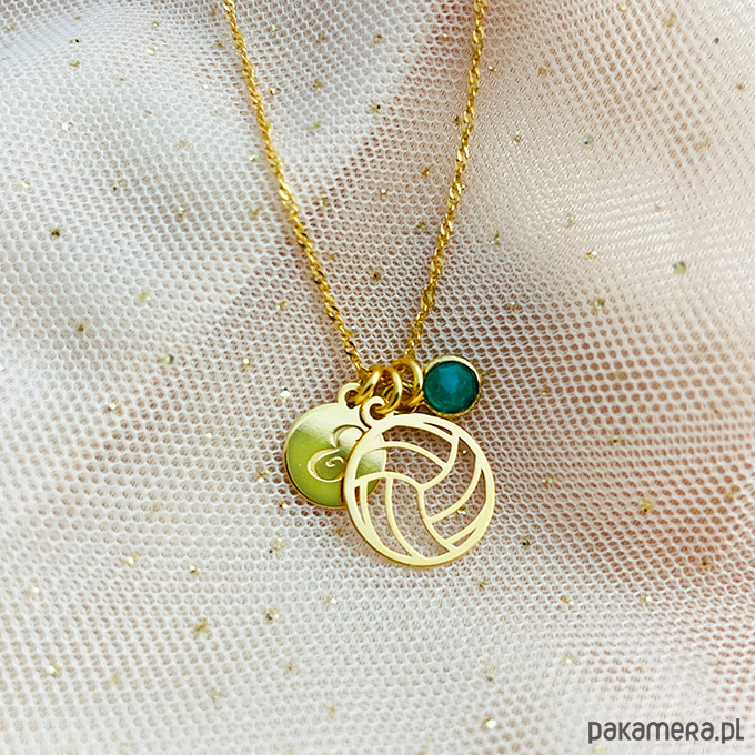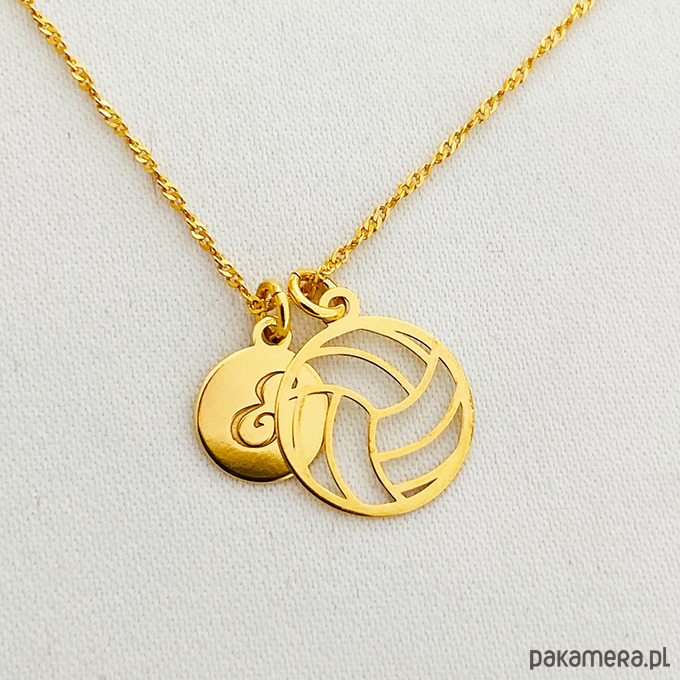 Naszyjnik z piłką , siatkówka srebro złocone