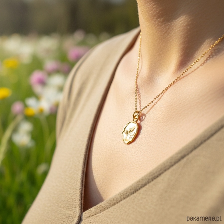 Naszyjnik z ręcznie uformowaną zawieszką z wytłoczonymi polnymi kwiatami z to nie tylko piękna ozdoba, ale także sposób na wyrażenie swojej osobowości i miłości do natury. Taki dodatek z pewnością przyciągnie uwagę i doda uroku każdej stylizacji.