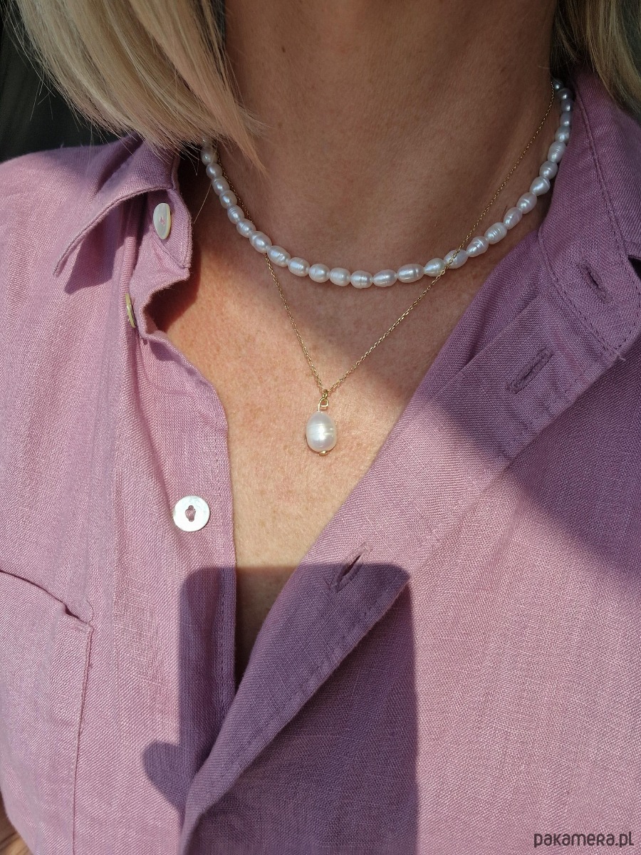 Czy może być coś bardziej subtelnego? Delikatny naszyjnik z naturalną perłą w kształcie kropli zawieszony na łańcuszku. Ten drobiazg to pretekst do polubienia sie z perłami, a jak to nastąpi możesz dołączyć do niego sznur pereł i bawić się rozmaitymi stylizacjami. Naszyjnik w całości wykonany z pozłacanego srebra próby 925.