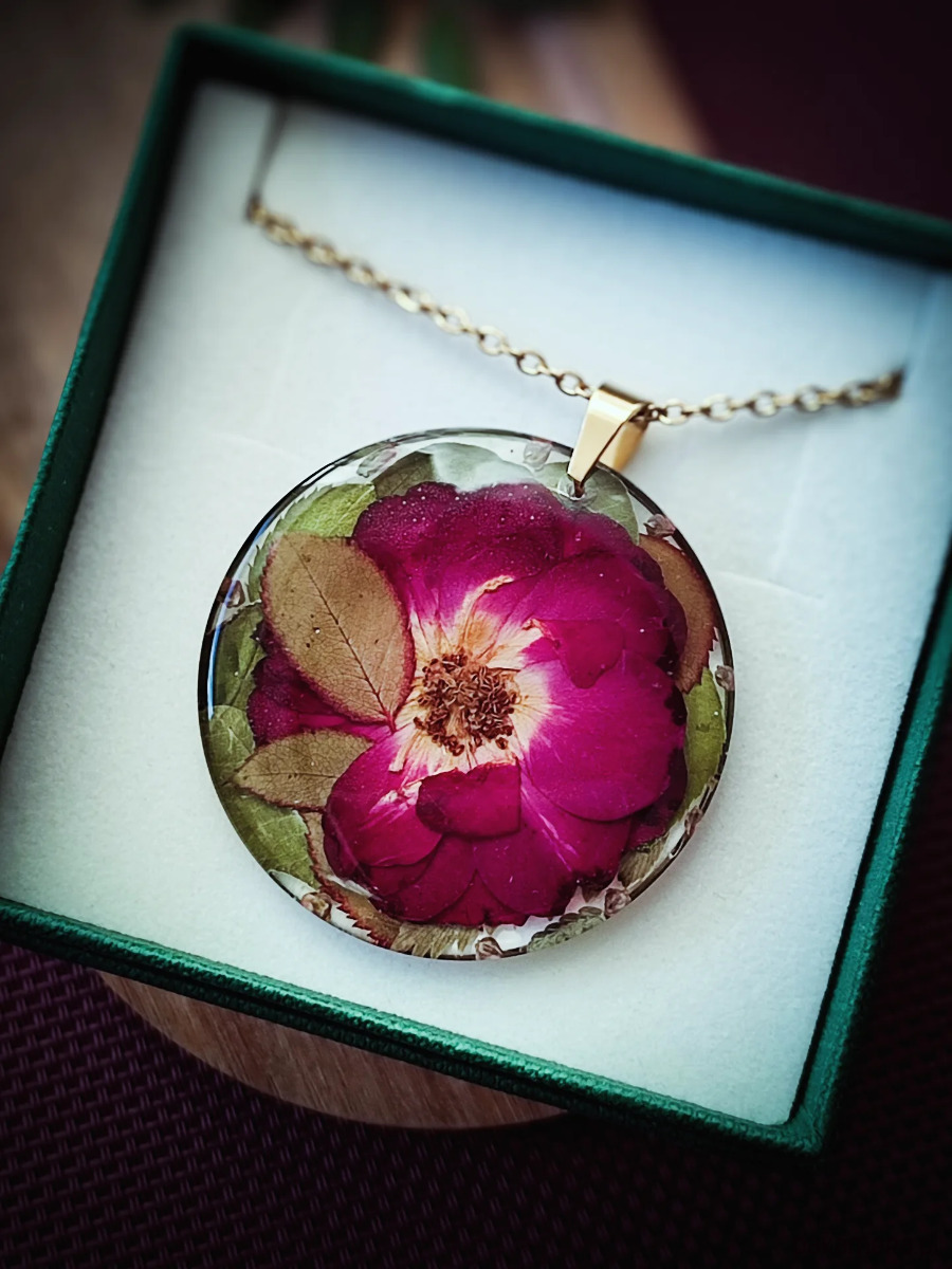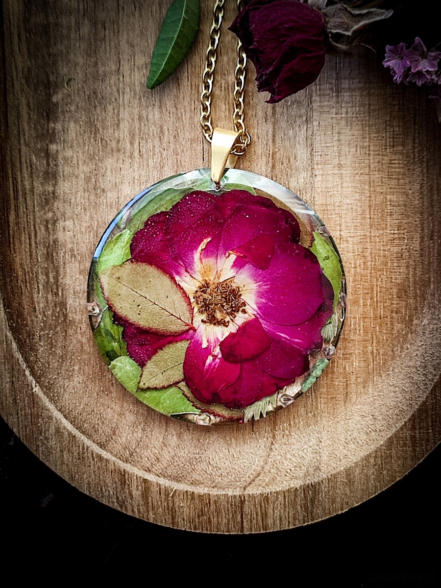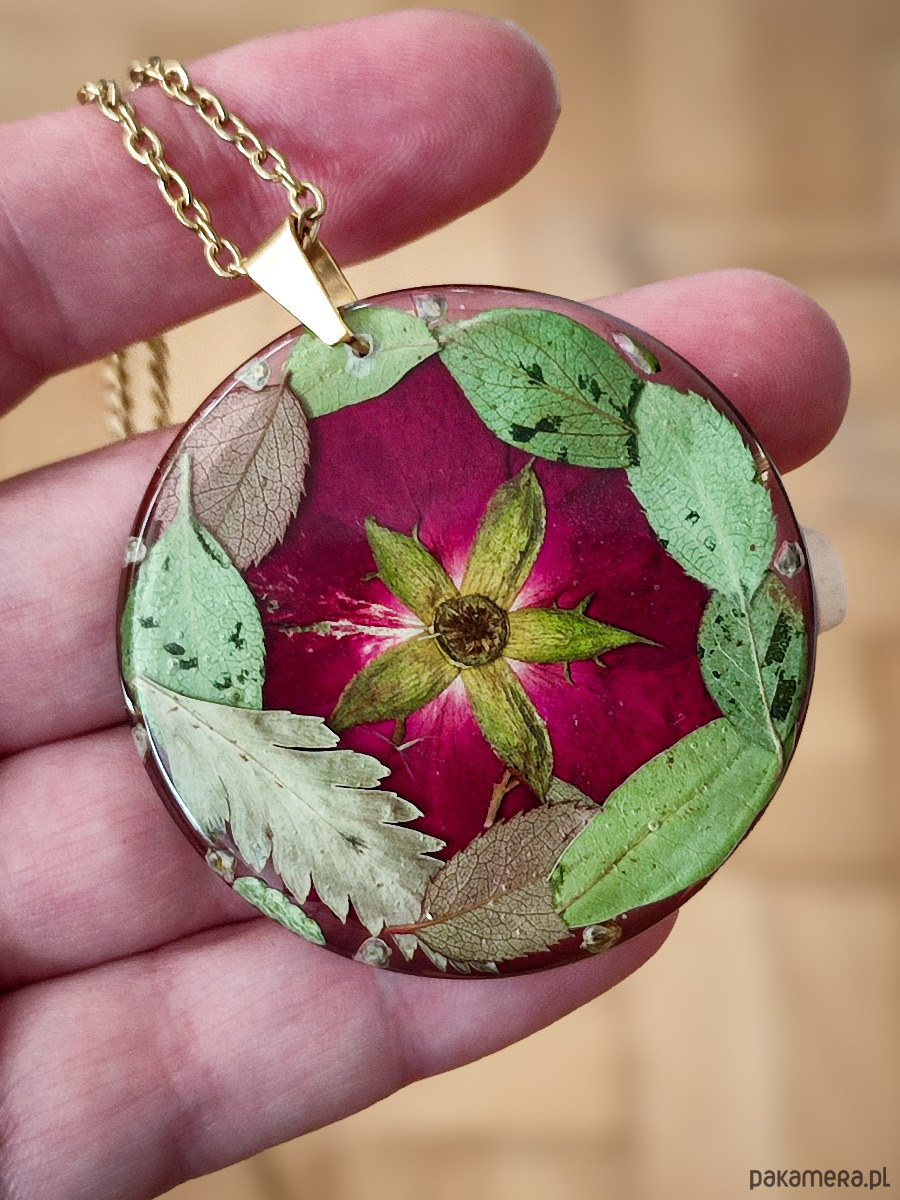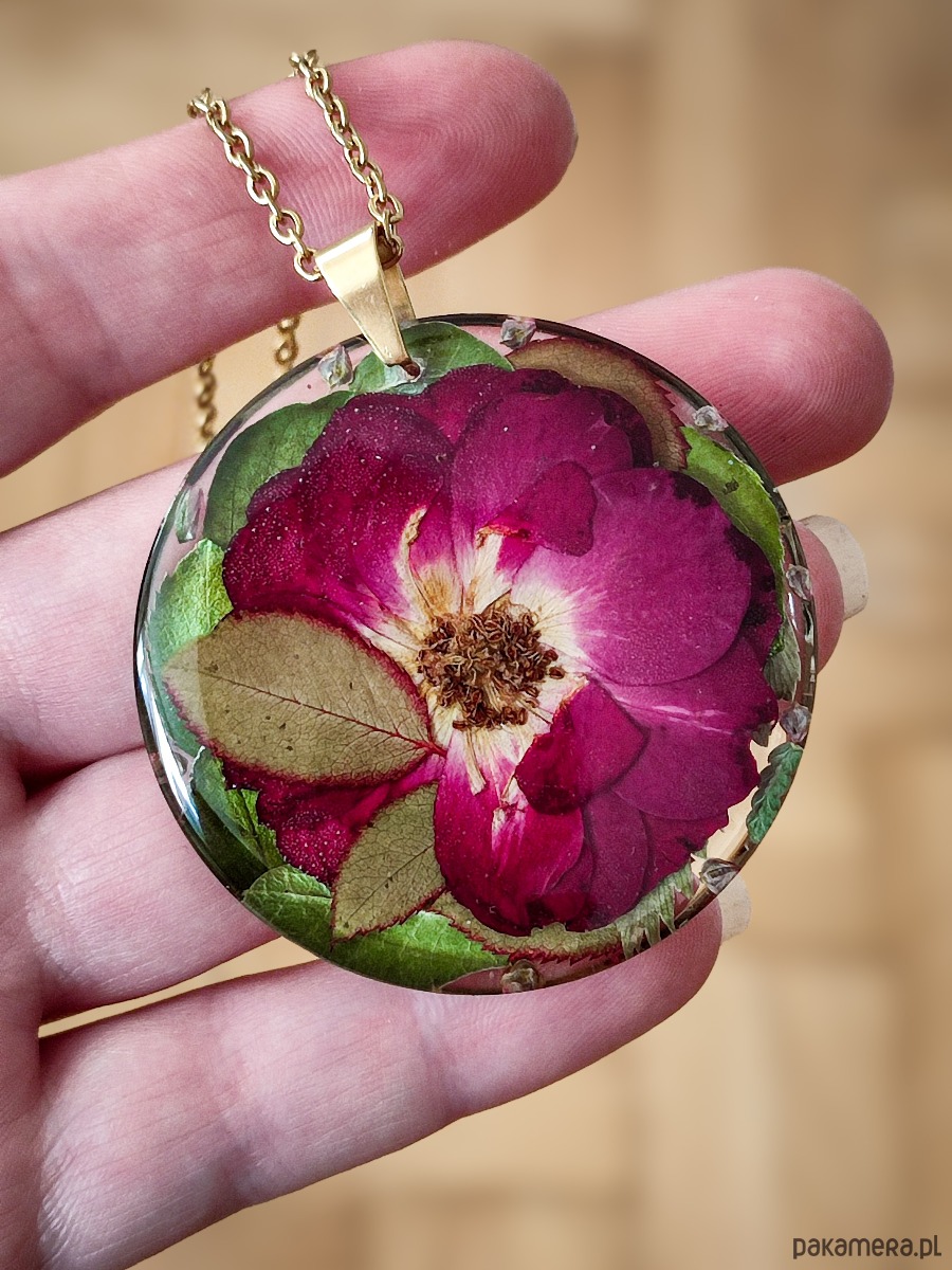 Naszyjnik z prawdziwym kwiatem róży w żywicy