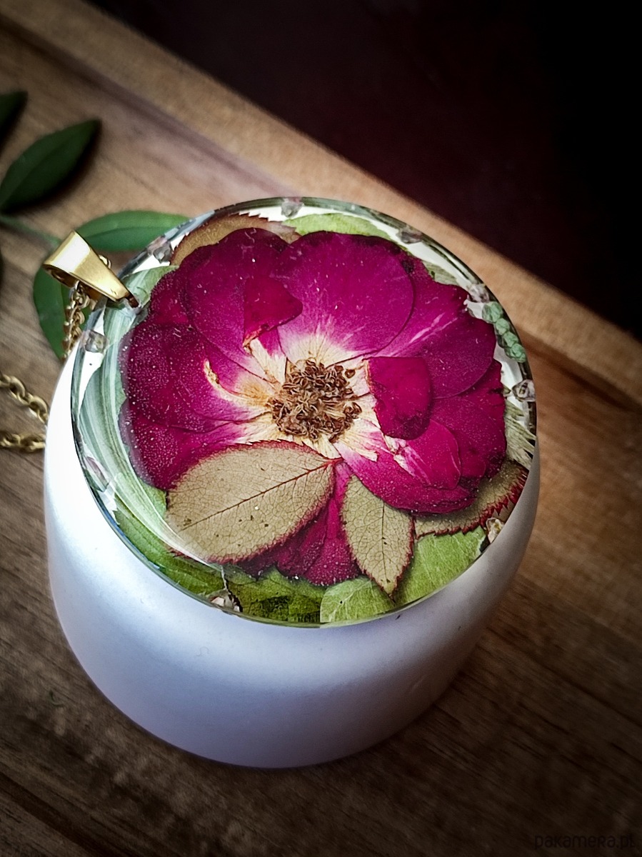 NASZYJNIK Z PRAWDZIWYM KWIATEM RÓŻY W ŻYWICY