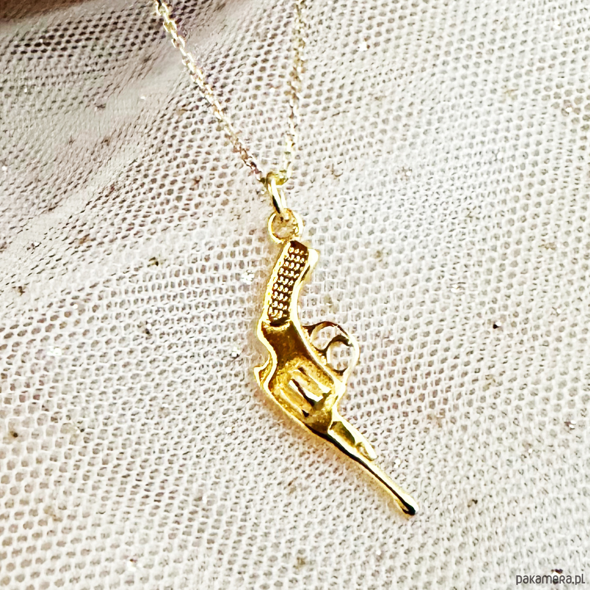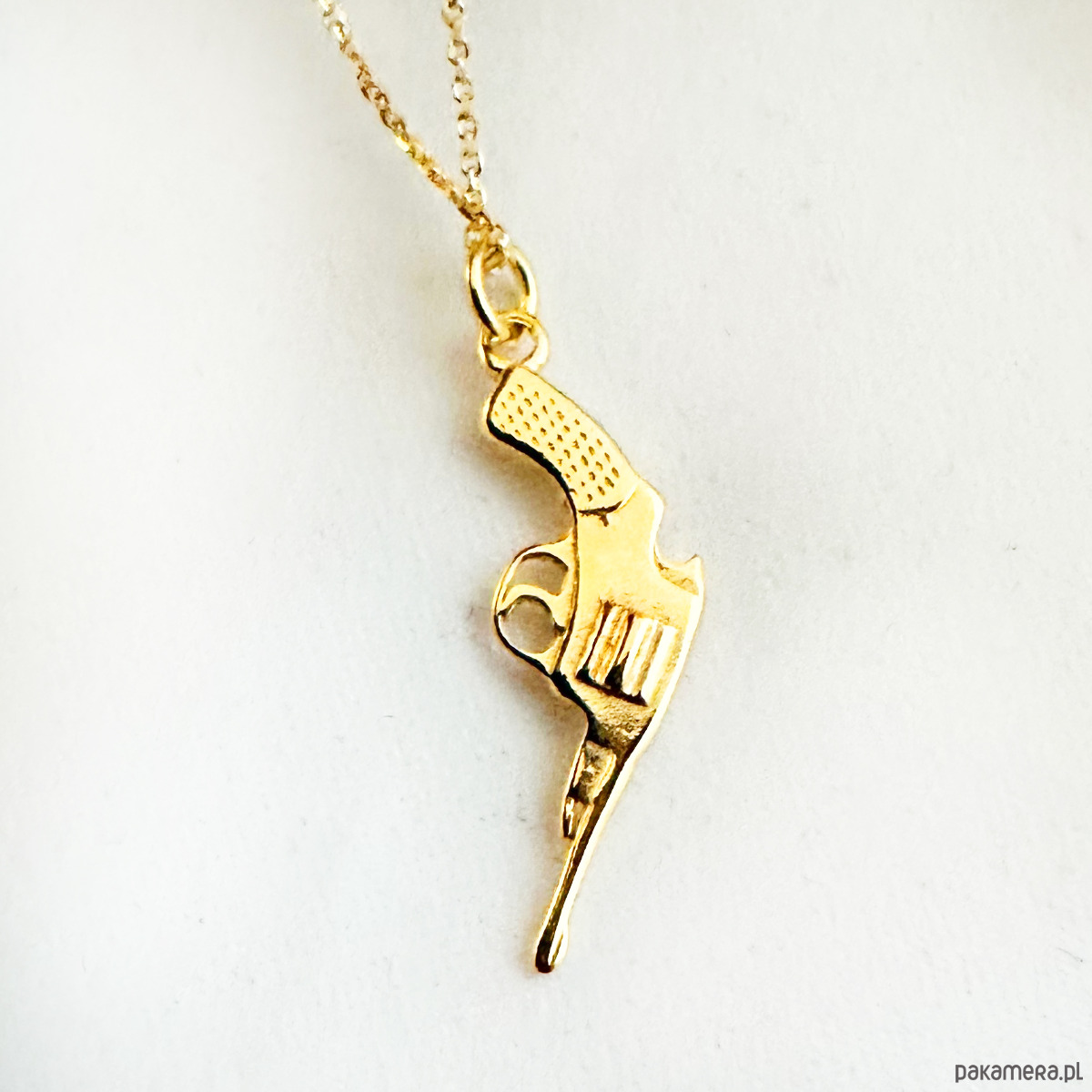 Naszyjnik z rewolwerem, złoty pistolet , broń, colt , western