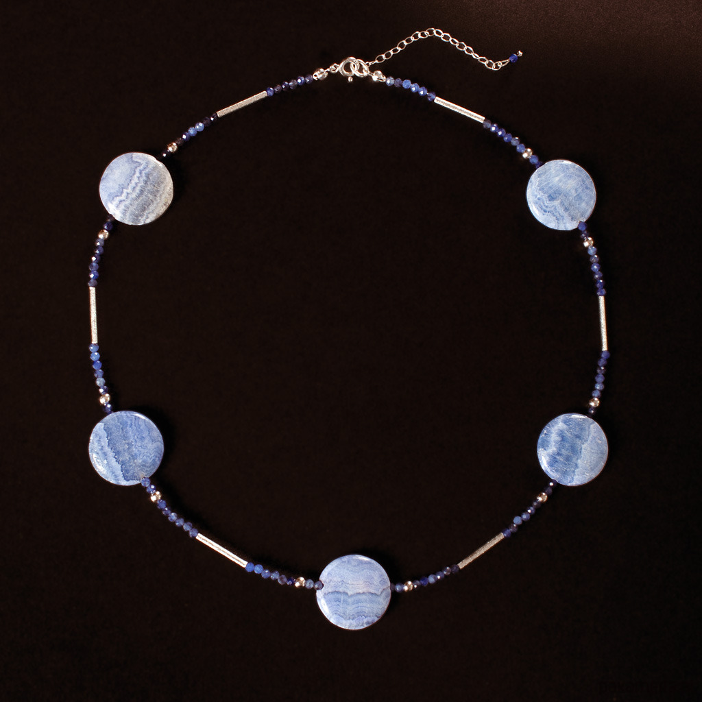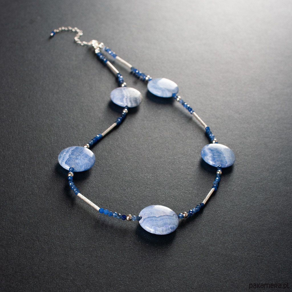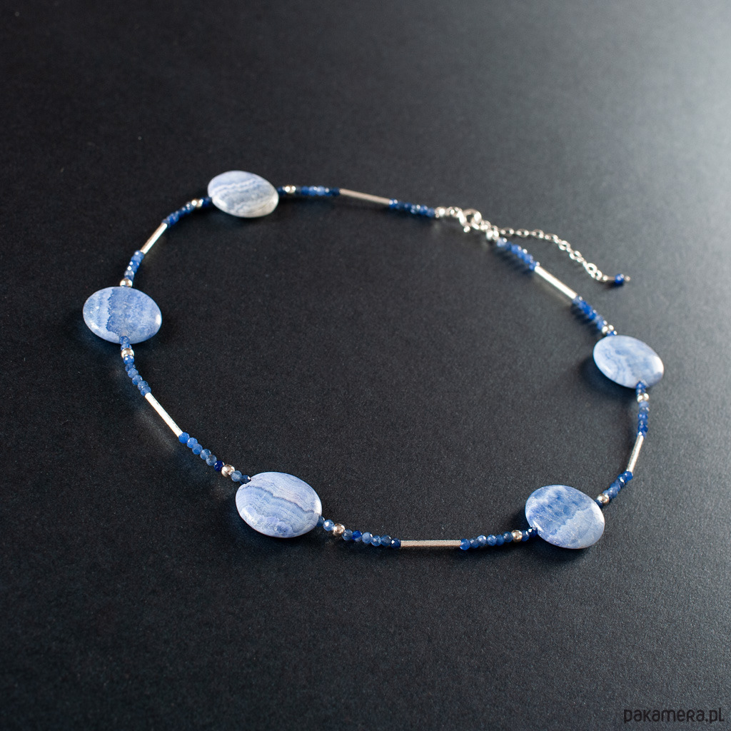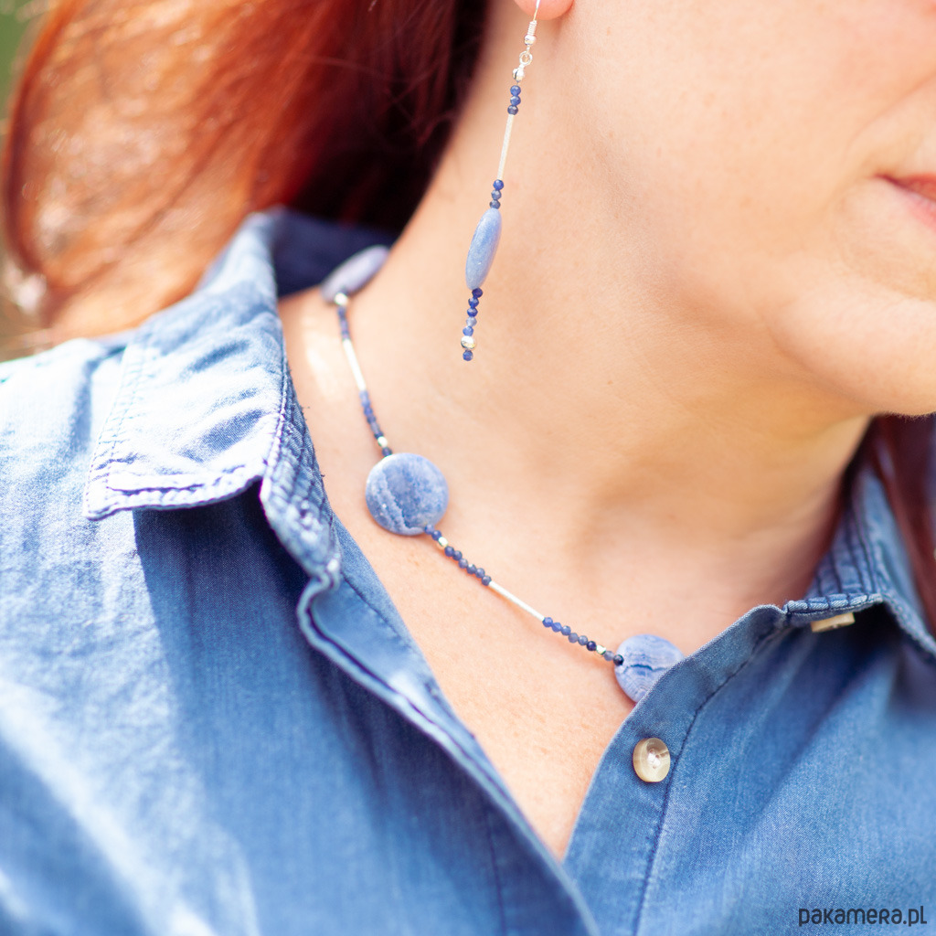 Naszyjnik z kolekcji SZAMANKA z rodochrozytem, sodalitem i srebrem 925. Długość naszyjnika 43 cm + łańcuszek 5 cm. Naszyjnik wykonany ręcznie według własnego projektu w pracowni Anillo. Biżuterię przesyłamy w eleganckim kartoniku.