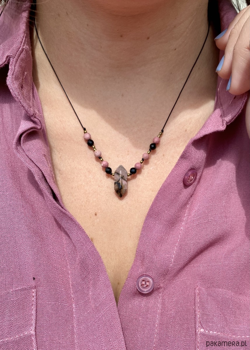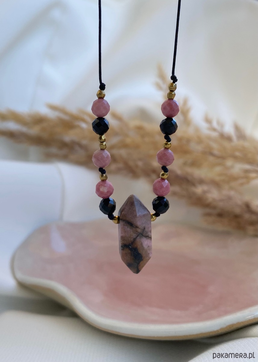 Naszyjnik z Rodonitem i Czarnym Turmalinem