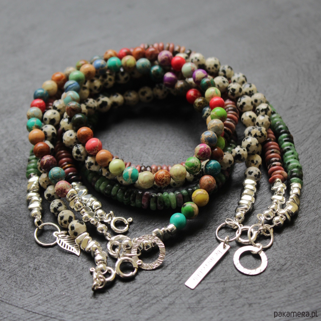 Naszyjnik ozdobiony został srebrnym młotkowanym kółeczkiem.