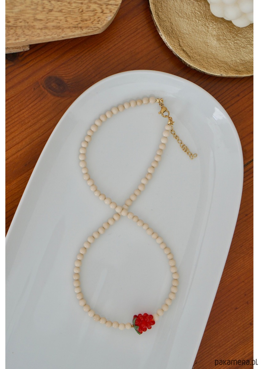 Naszyjnik wykonany ręcznie ze szklaną malinką, stali chirurgicznej, hematytów i kremowego jaspisu . Wielkość: zawieszki 15 mm, jaspis 4 mm. Długość naszyjnika 40 cm + 5 cm przedłużka. Naszyjnik pakowany jest w eleganckie pudełeczko prezentowe.