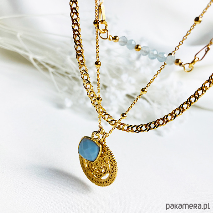 1- Delikatny naszyjnik z akwamarynem – subtelny akcent w odcieniach morskiego błękitu, idealny na co dzień.