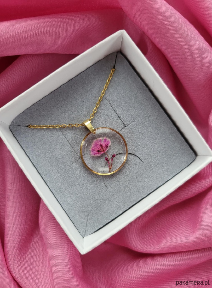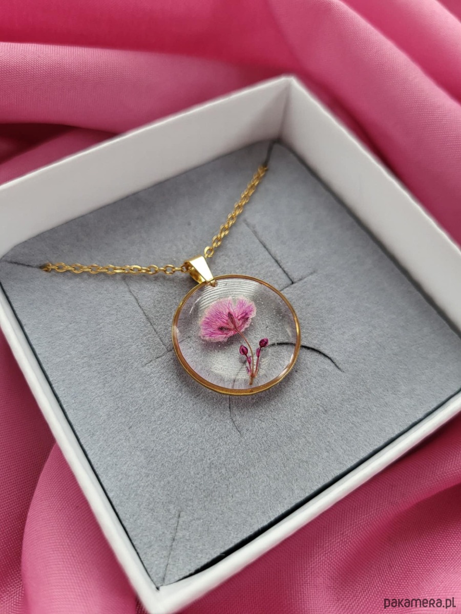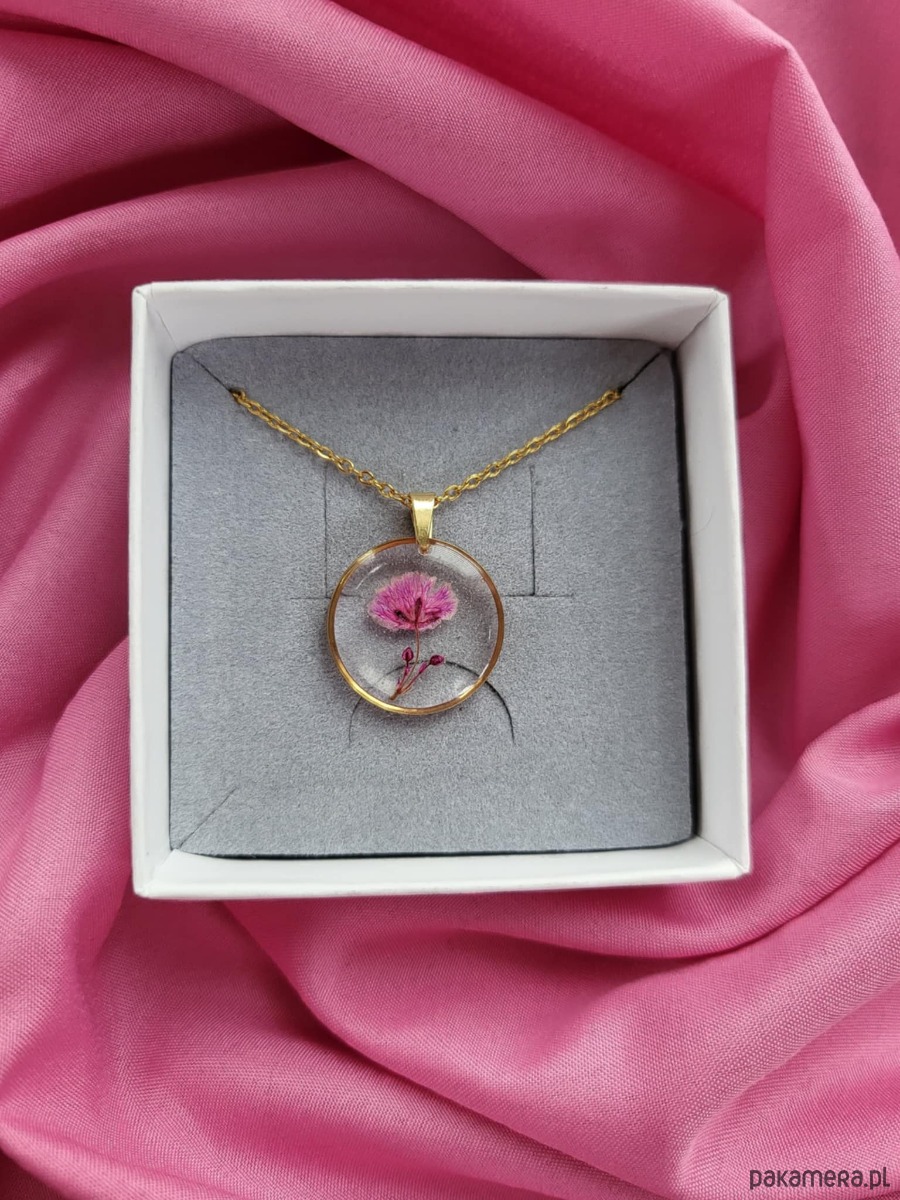 Naszyjnik z kwiatem suszonej gipsówki to unikatowa, ręcznie wykonana biżuteria z serii Harmonia.