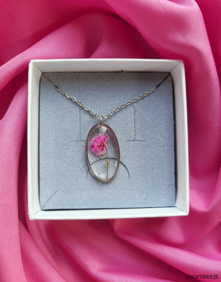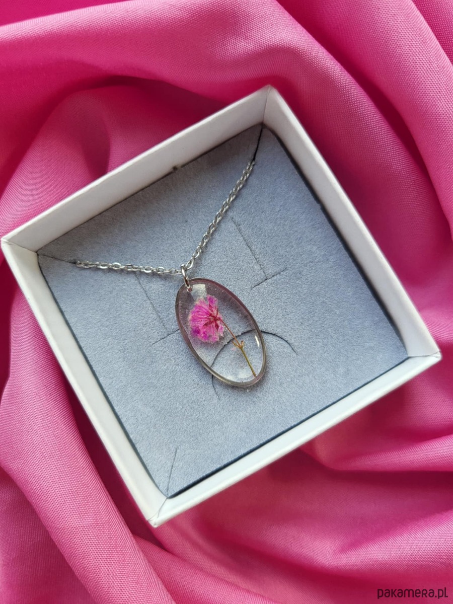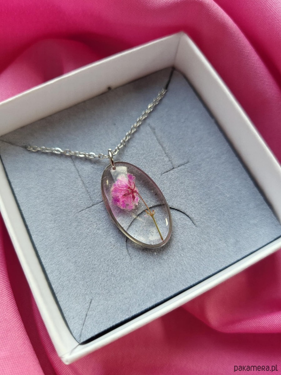 Naszyjnik z kwiatem suszonej gipsówki to unikatowa, ręcznie wykonana biżuteria z serii Harmonia.