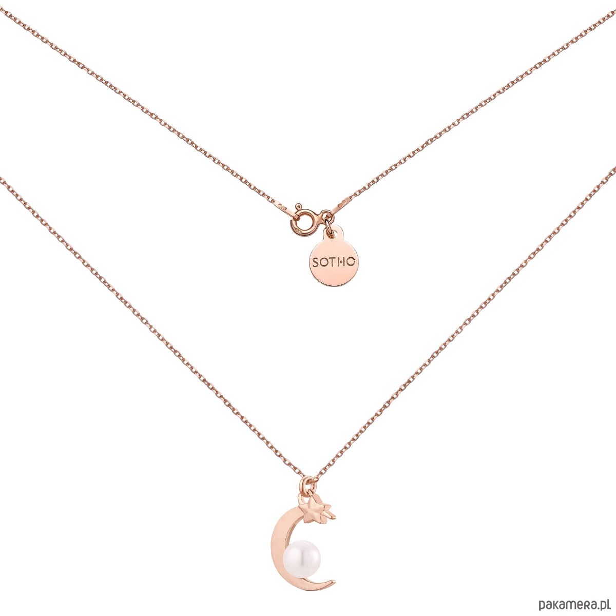 Złoty naszyjnik z księżycem i perłą SWAROVSKI® CRYSTAL w kolorze białym- White. Całość wykonana ze srebra 925 powlekanego 18 karatowym różowym złotem.