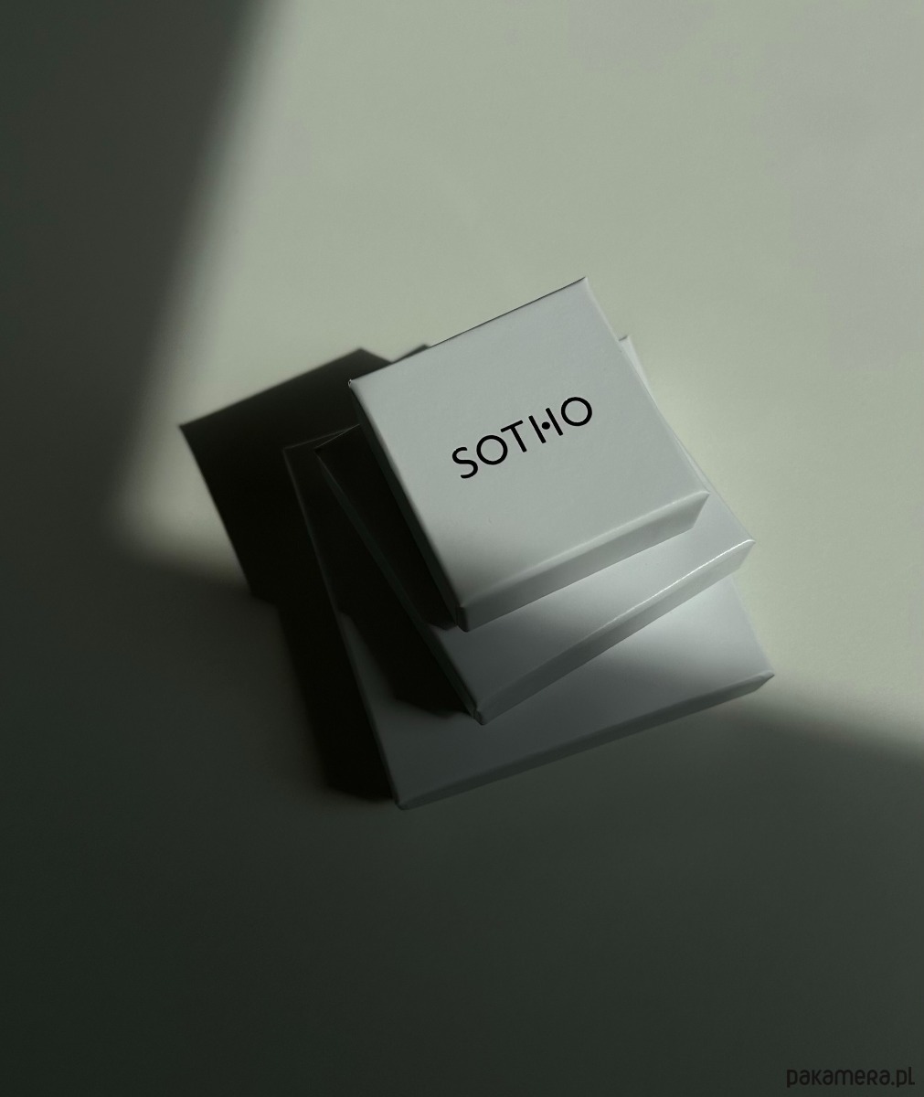 Zapakowany w eleganckie pudełeczko z logo marki.